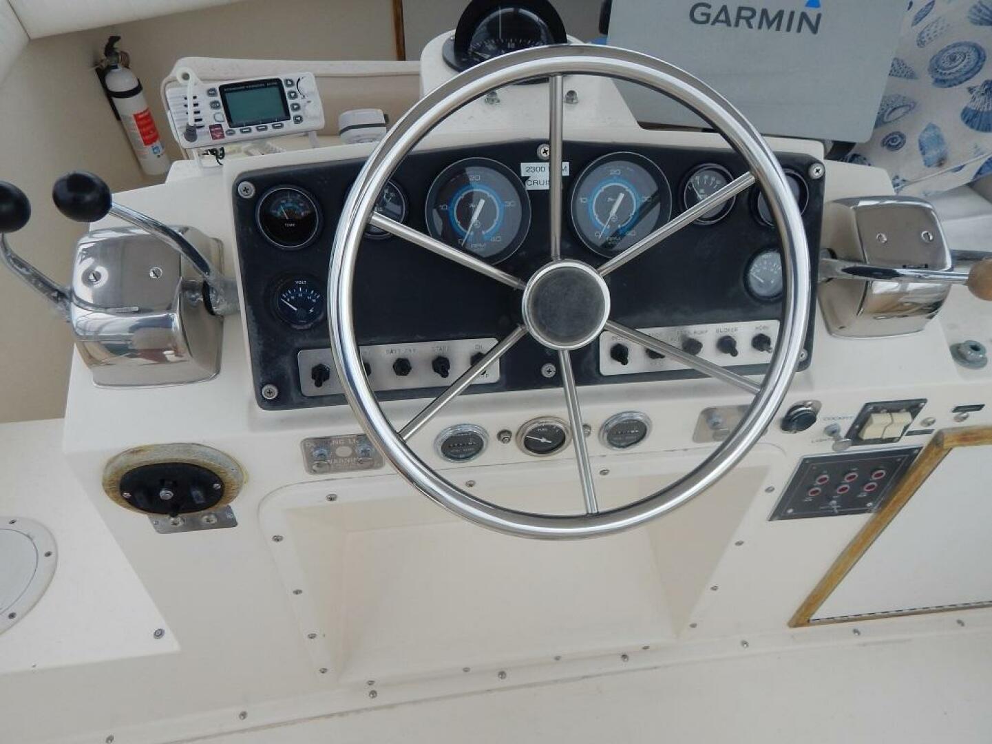 A long time favorite for offshore anglers when introduced and still does the job today. The deep vee hull, solid construction and huge cockpit are traits of this purebred. The Caterpillar engines provide reliable peformance. Upgrades in the electronics, cushions, curtains, head and well cared for enclosure make a ready to enjoy package. Attractive price to settle an estate, call to see her in Sales Tax free North Kingstown, RI today.