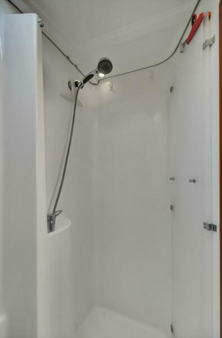 - Hot/cold water cockpit shower