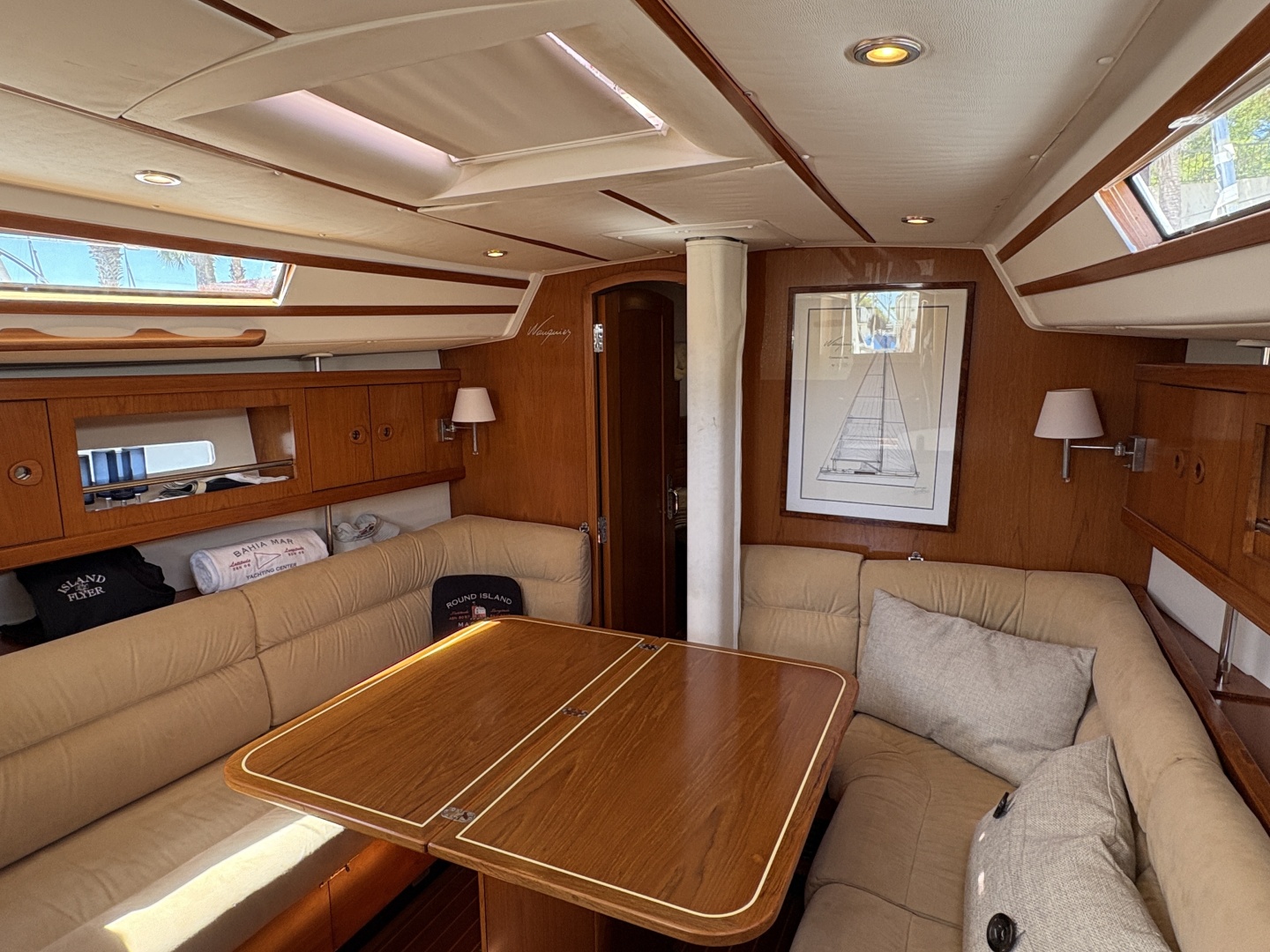 The Wauquiez 40S features a comfortable and attractive two-cabin, one-head layout with a spacious salon, dedicated navigation station, a head with a separate shower, and a functional galley.