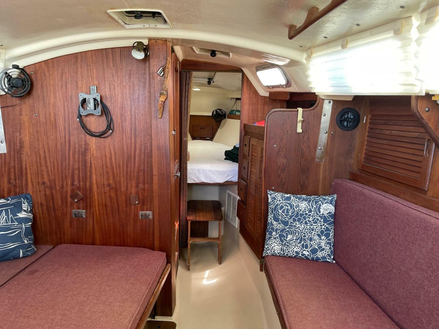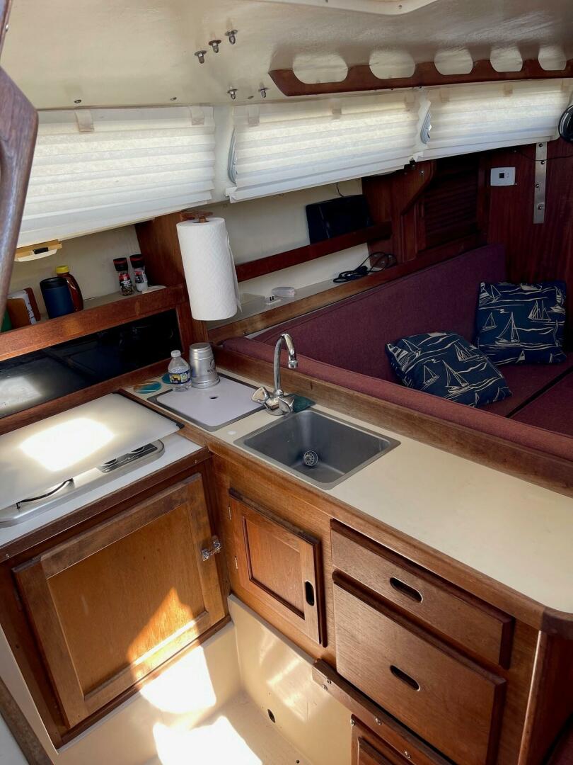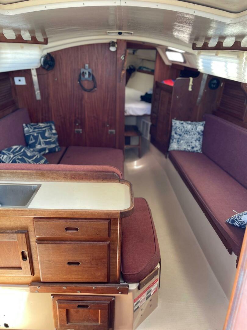 The Catalina 30 has a spacious and well-lit interior, with large windows and hatches that provide ventilation and natural light. The boat can sleep up to seven people in three separate cabins: a V-berth forward, a double berth aft, and two single berths in the main salon. The boat has a U-shaped galley on the port side, equipped with a stove, a sink, and an icebox. The boat has a head on the starboard side, with a marine toilet, a sink, and a shower. The boat has ample storage space throughout, with lockers, drawers, shelves, and cabinets.