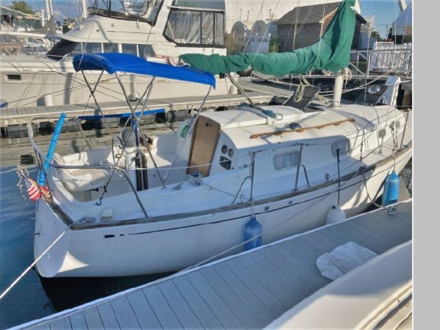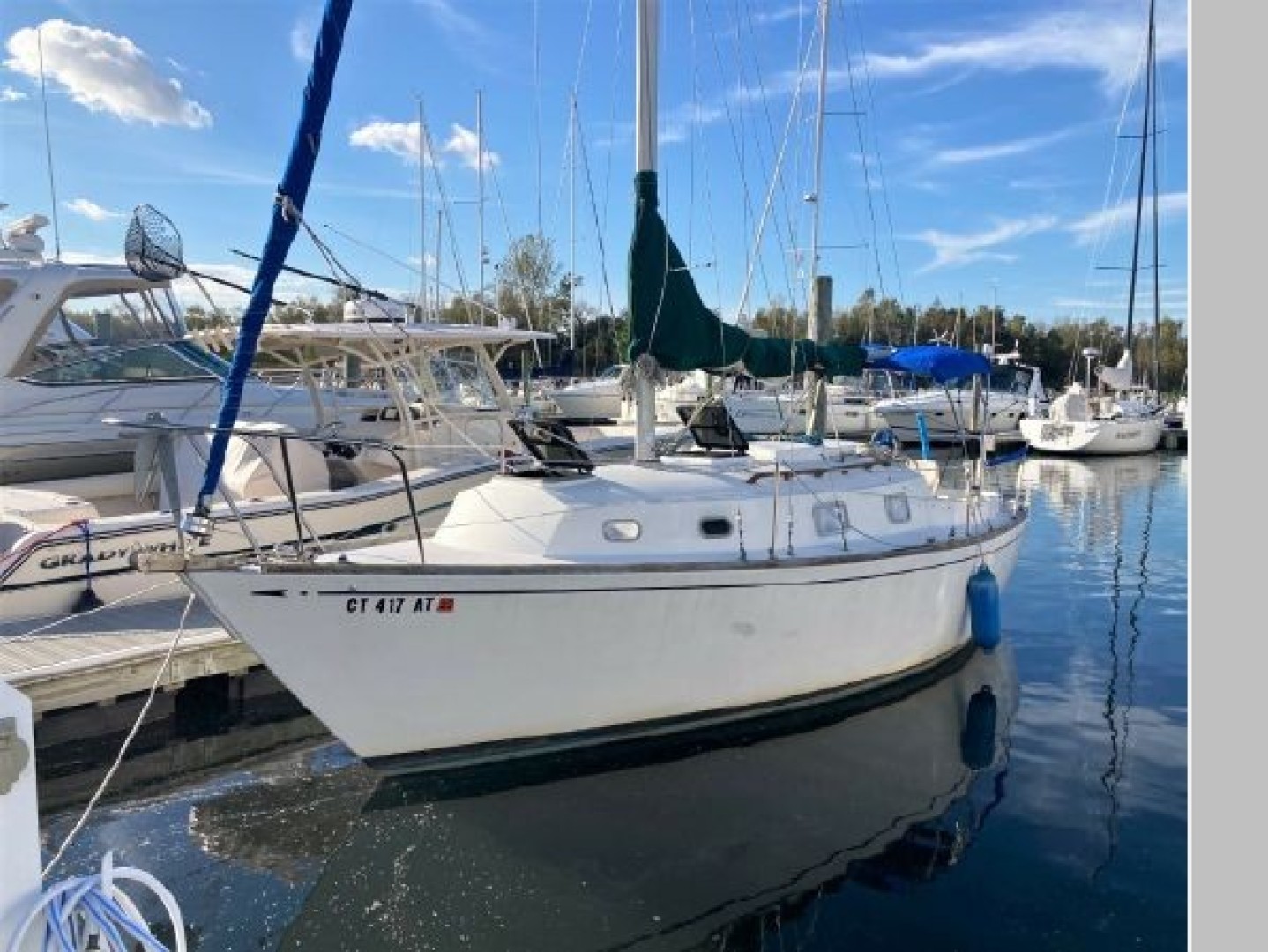 New October listing! Those who prefer traditional lines from a well respected builder in an easily managed size, this classic Bristol 27.7 deserves a close look. Equipped with Harken roller furling. main and genoa, boom vang, whisker pole, pedestal steering, Bimini top, 110V shore power, refrigeration, alcohol stove and more. Her attractive interior is nice and clean. Powered with a 15hp Yanmar diesel. She's a nice boat for not much money and in the water, ready to sail away.