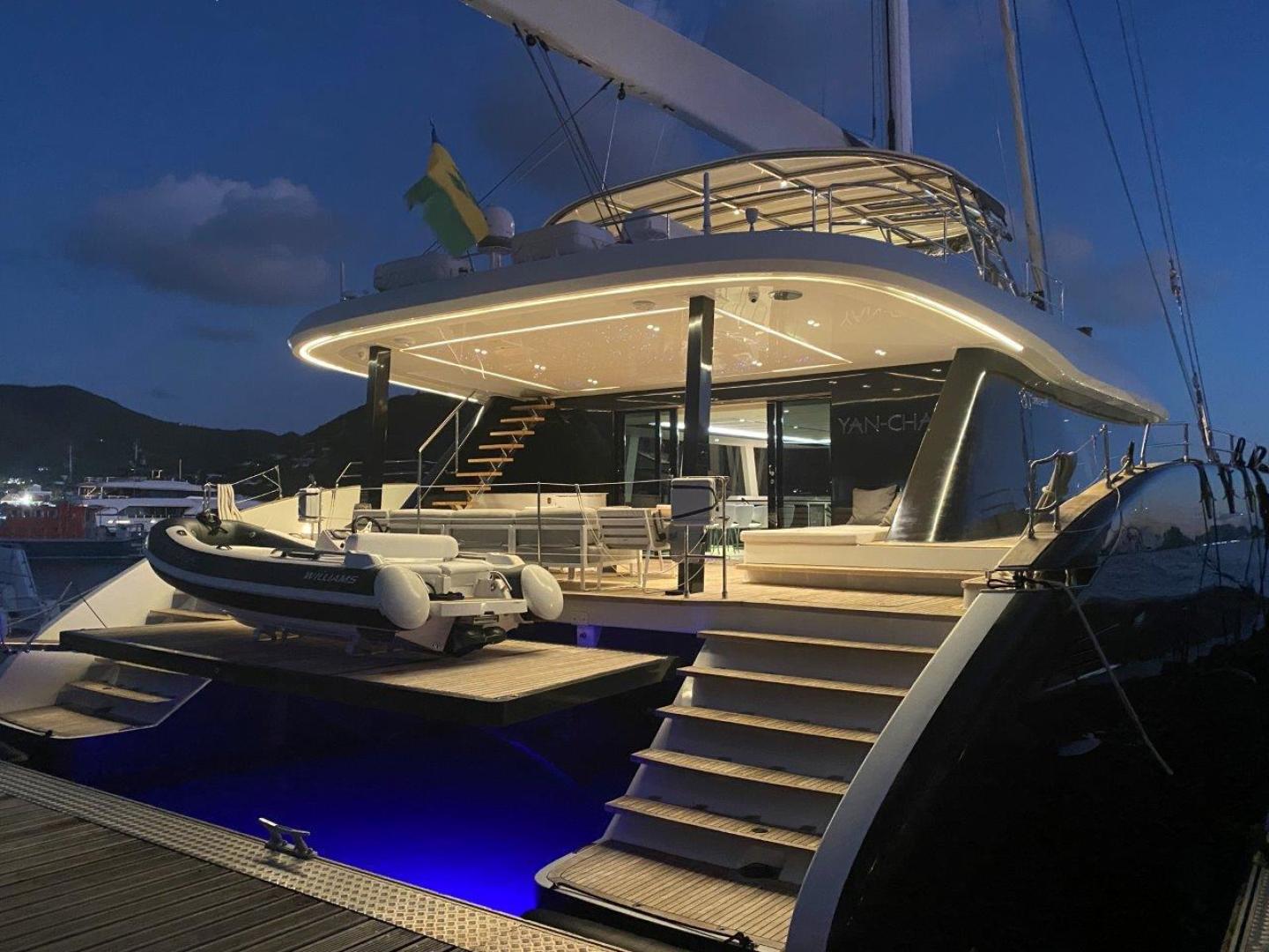 YAN CHAAC is hull 05 of the SUNREEF 80 sailing catamaran series. Very strong and proven yacht with ultimate charter capabilities and/or world capable cruising. Immense space and volume. Captain/Crew have maintained and sailed her 55,000 miles and report astounding performance under sail. The condition of this yacht is exceptional especially given her many sea miles. Robust construction and simple systems. Inspections recommended.