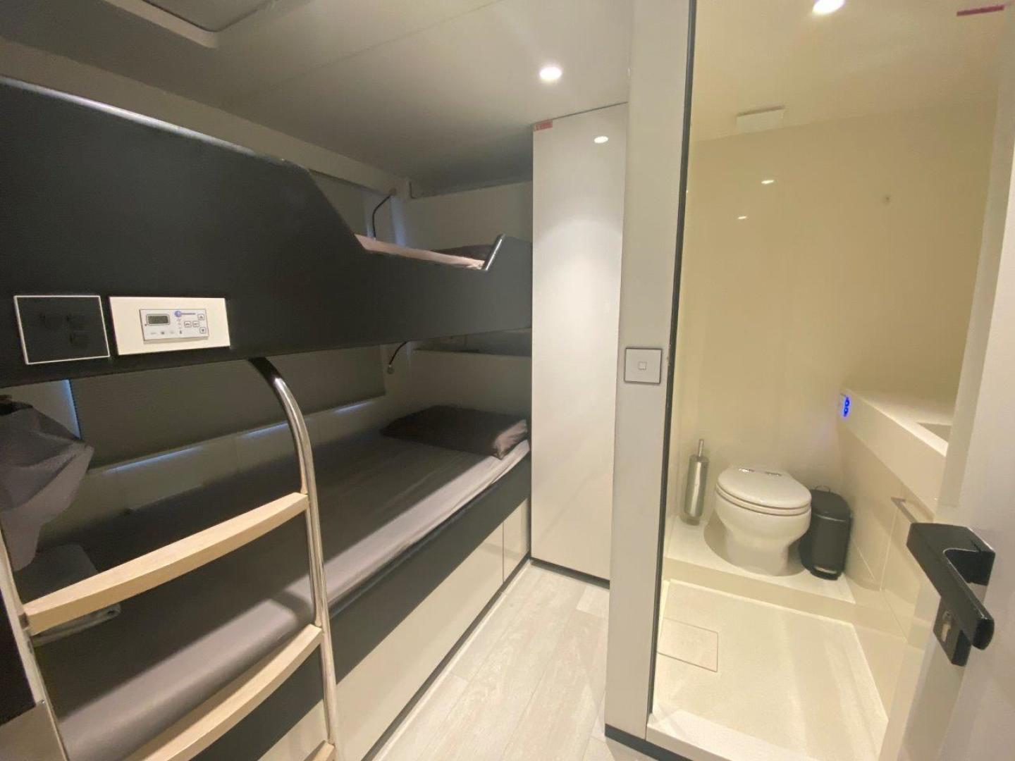 Fitted additional crew in forepeak on starboard: bed and bathroom with composite painted wall