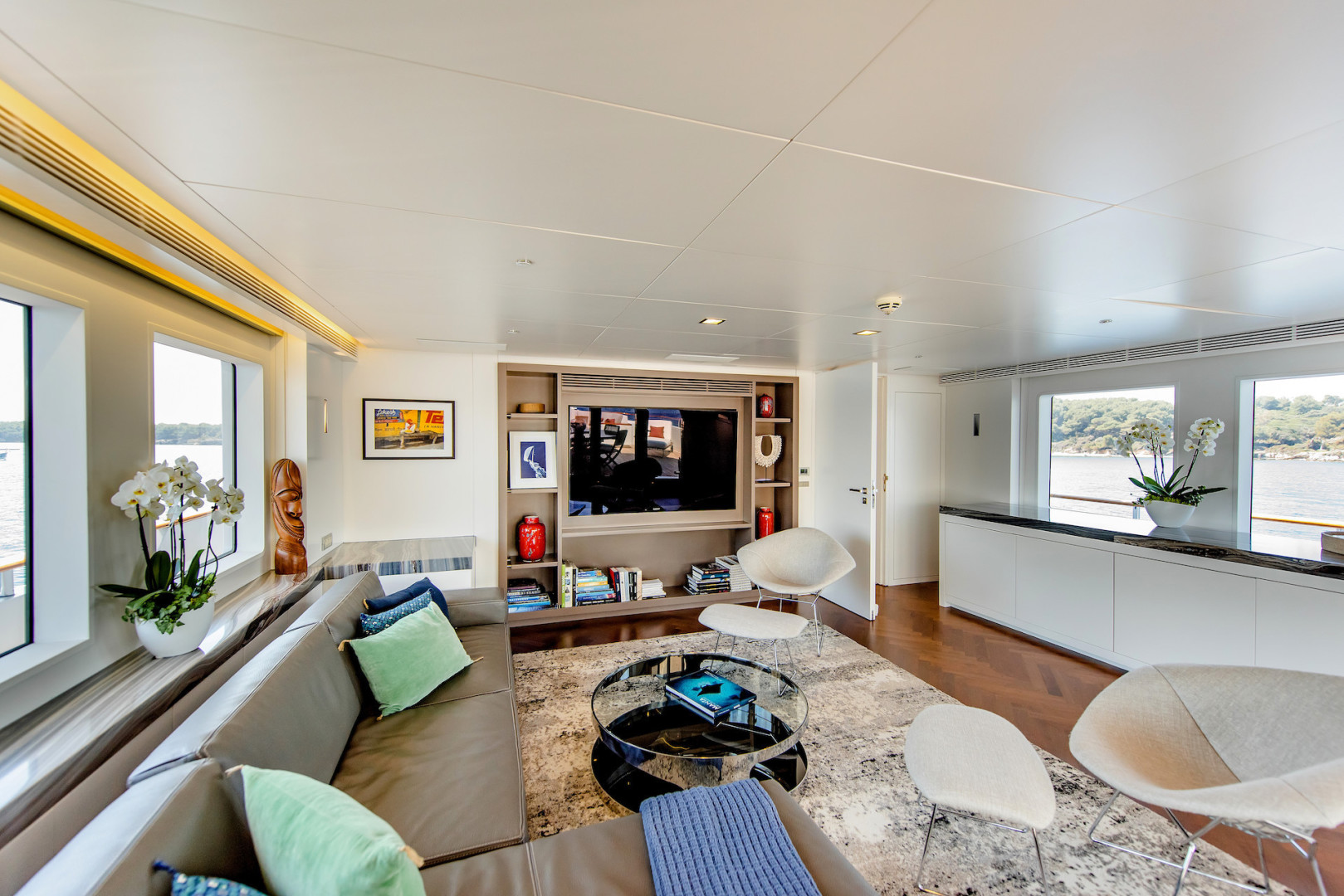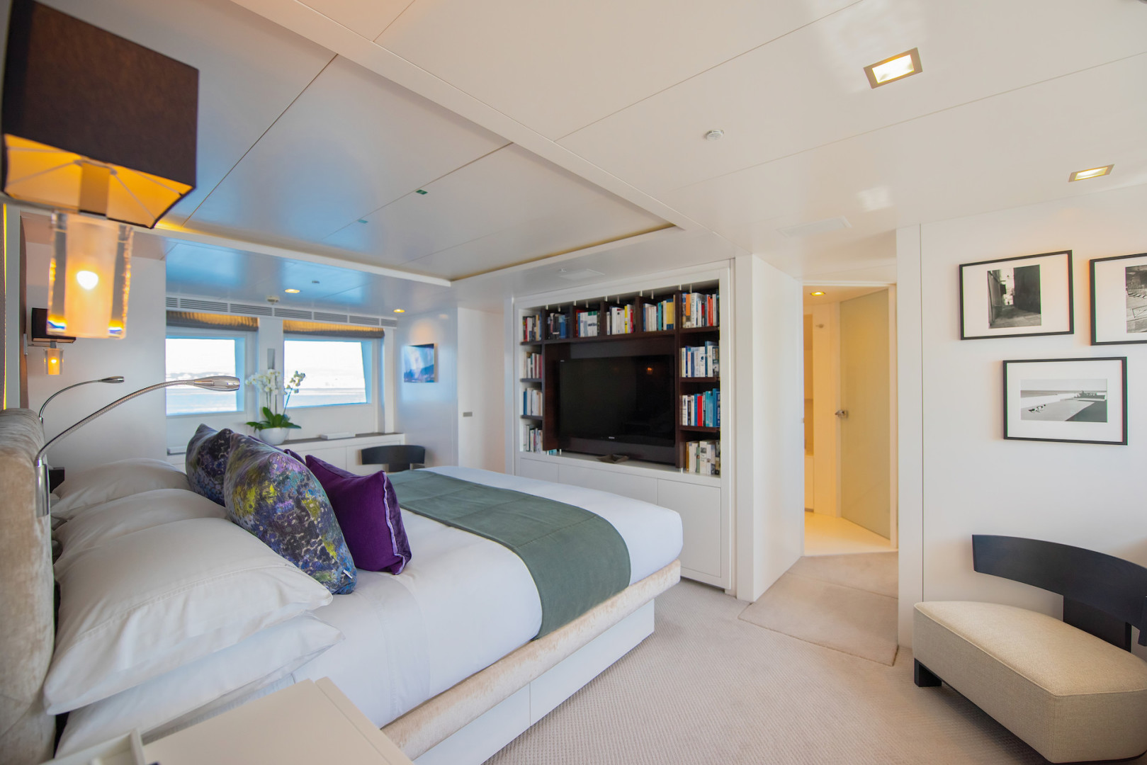 Her hull lines contribute to fuel efficiency along with CAT C32 power which at cruising speed give her a capability of 4500 nm. The high flared bow and full curved round bilge, with Zero Speed Quantum stabilization ensure the safest and most comfortable cruising in adverse weather.