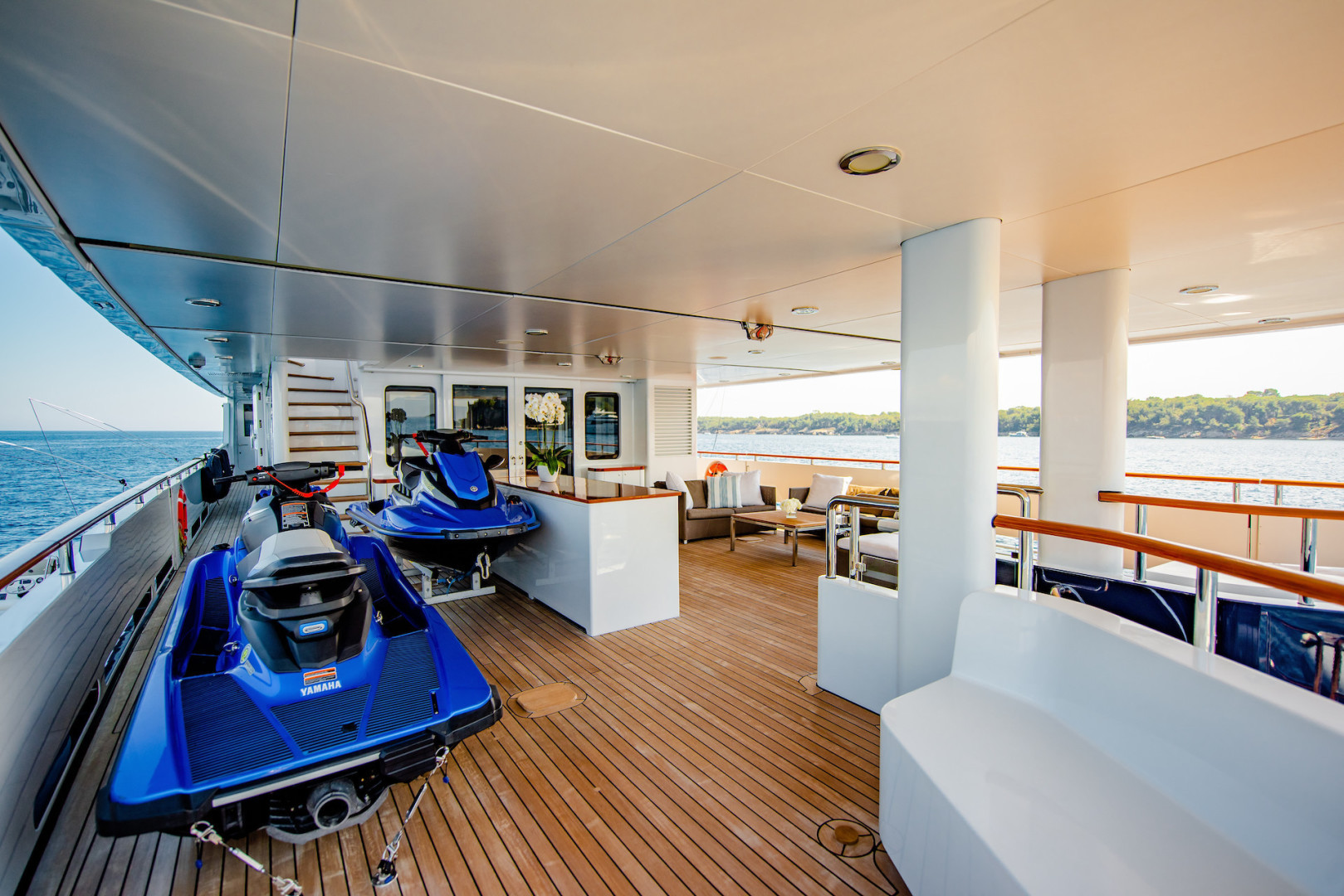 Her 5-stateroom arrangement with master suite on the main deck and tri-deck configuration offers very comfortable interior/exterior living and entertainment areas, while also providing very functional operational spaces.