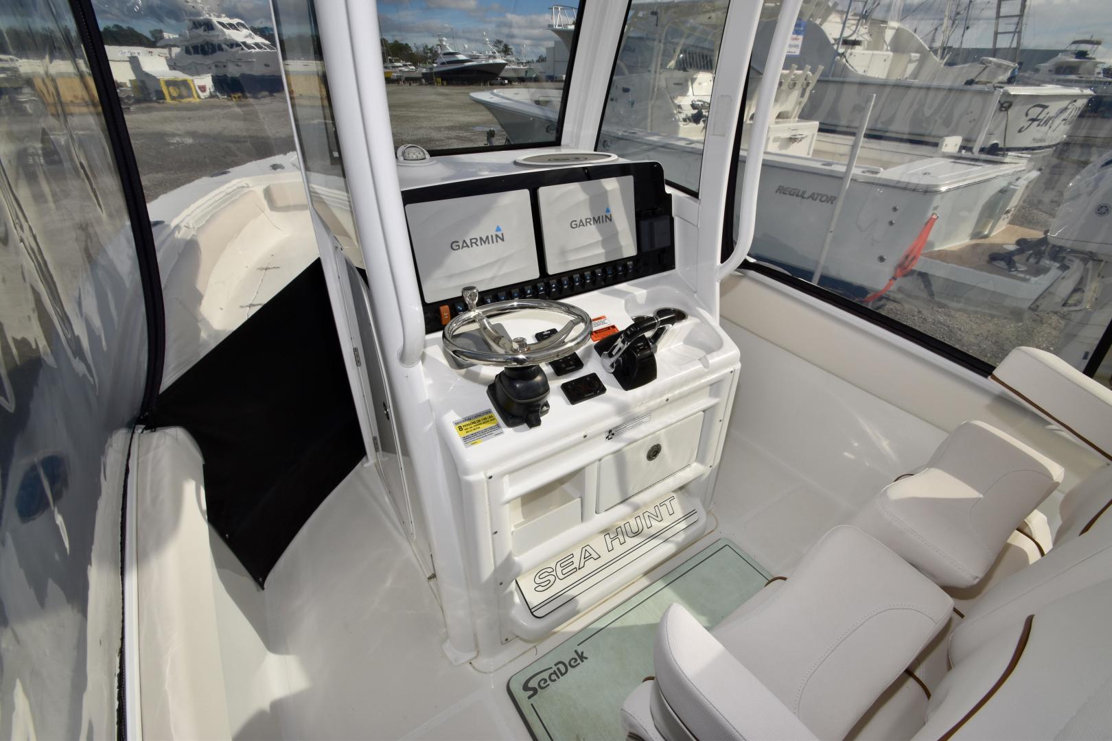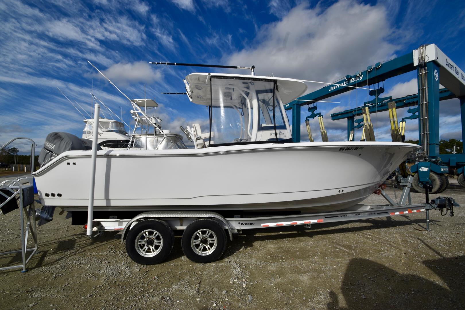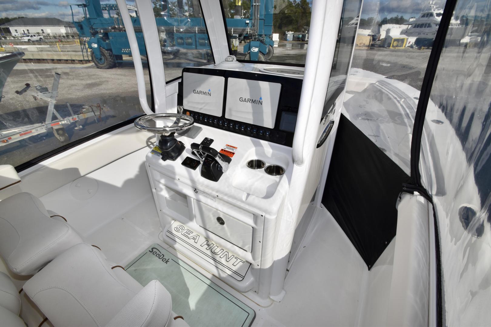 The Sea Hunt Gamefish 25 is a true fishing machine, with a lot of useful features packed into a 25' center console. The Gamefish Series 25 is focused more towards the fisherman, with more cockpit space, a 27gal transom livewell, a 35gal leaning post livewell, and a 220qt transom fishbox. This model also boasts vast amounts of storage, in-deck and under the bow seating. This boat is equipped with a solid electronics package as well: Two Garmin 12" MFDs, Garmin Autopilot, Garmin VHF radio, JL Audio stereo and speakers, and much more. She shows well, the cushions (all included) are in great shape, and she stays on the trailer. The Yamaha F150s have approximately 440 hours and transferable extended warranty until 2027! A 2019 Wesco trailer is included with the sale.