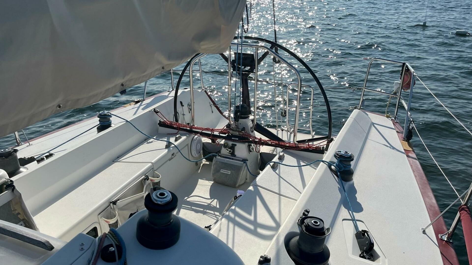 Mast,boom,wheel & instrument pod faired and painted at Hinkley 4 coats black awlgrip New HS000 B&G Hercules performance electronics installed