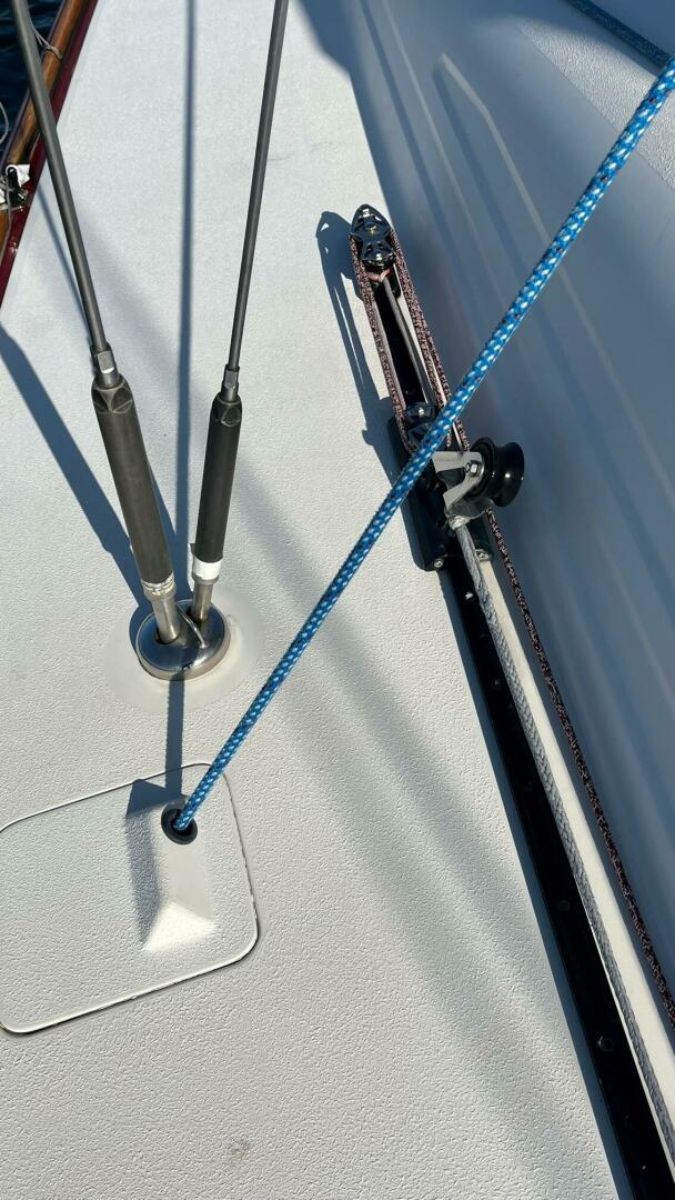 Mast rewired,hi-gain RG58 marineVHFcable, Deutch quick connectors at mast base Mast butt sand blasted and epoxy coated