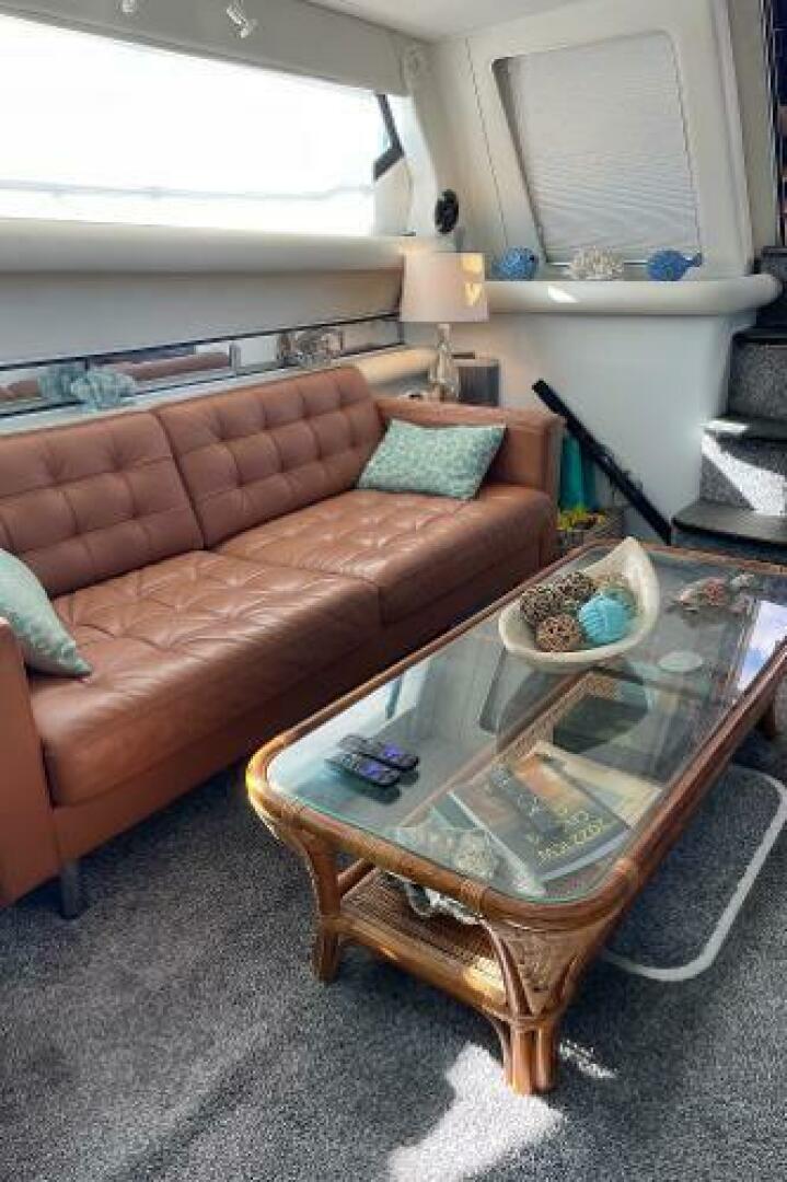 - Comfortable seating in the salon on a Leather Sofa (2019) to starboard and recliner to port