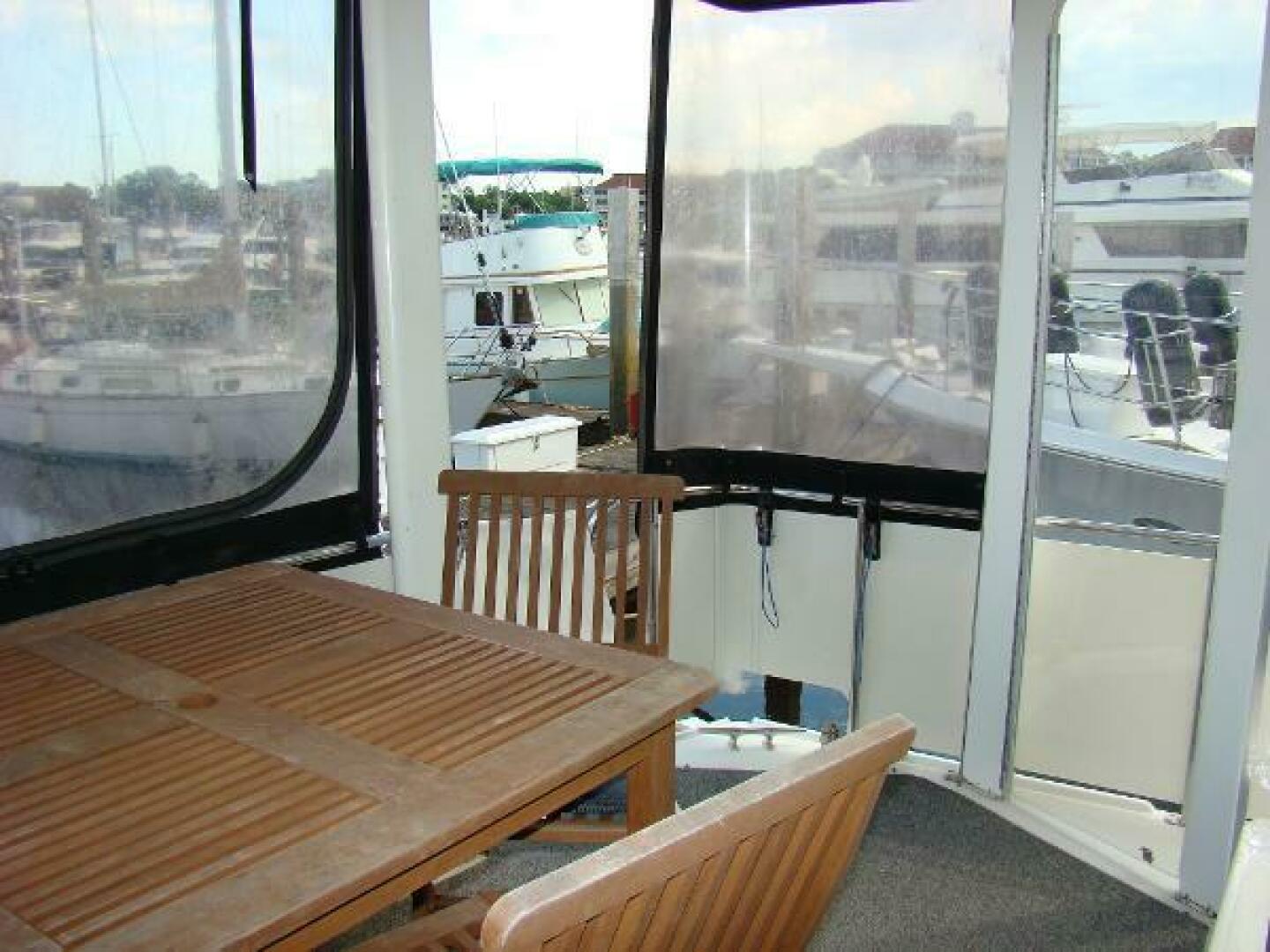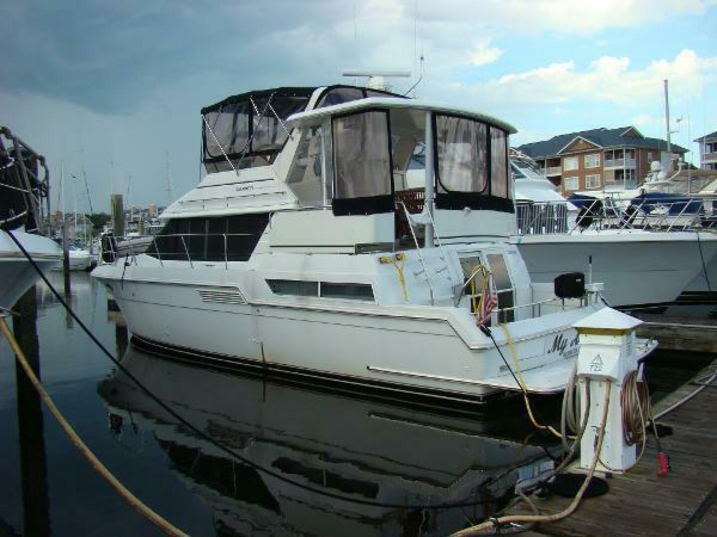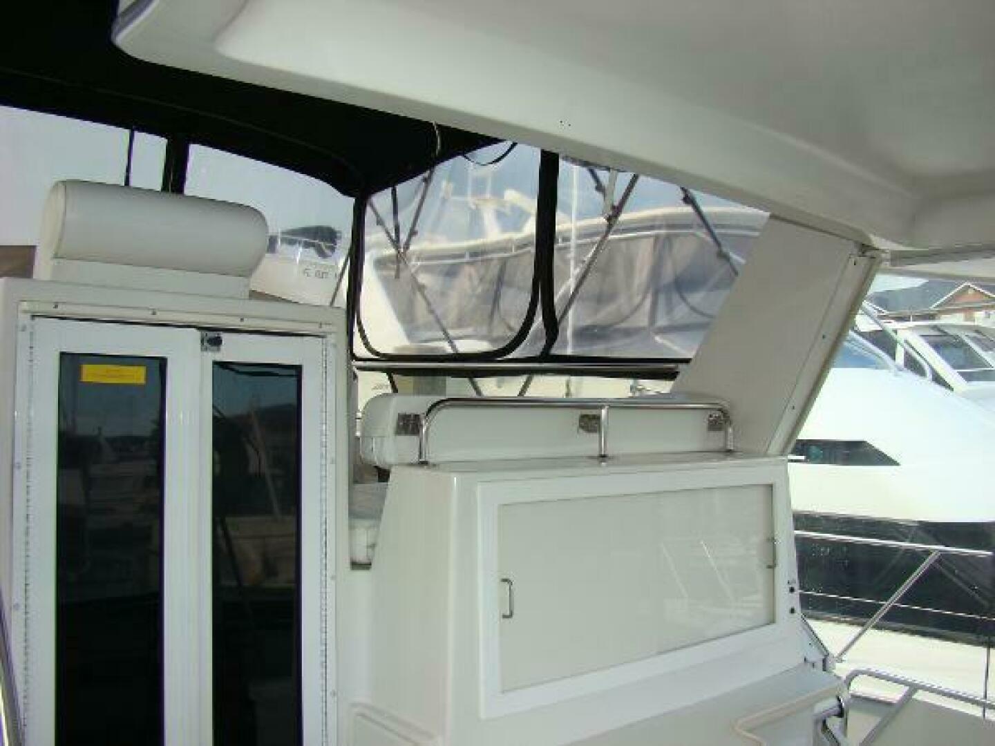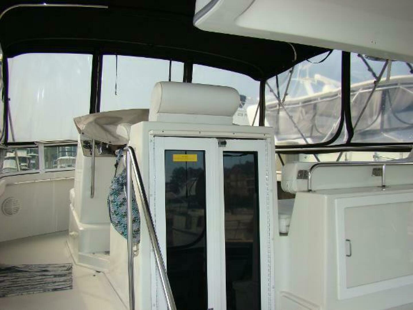 The Carver 430 Cockpit Motor Yacht features a luxurious master stateroom, with a large inner-spring berth and private head compartment complete with shower and vanity. A spacious aft deck with hard top and enclosure provides superior protection from the sun and weather. The 430's spacious salon offers plenty of comfortable seating as well as an entertainment center. The fully equipped galley is laid out to make meal or snack preparation easy and enjoyable.