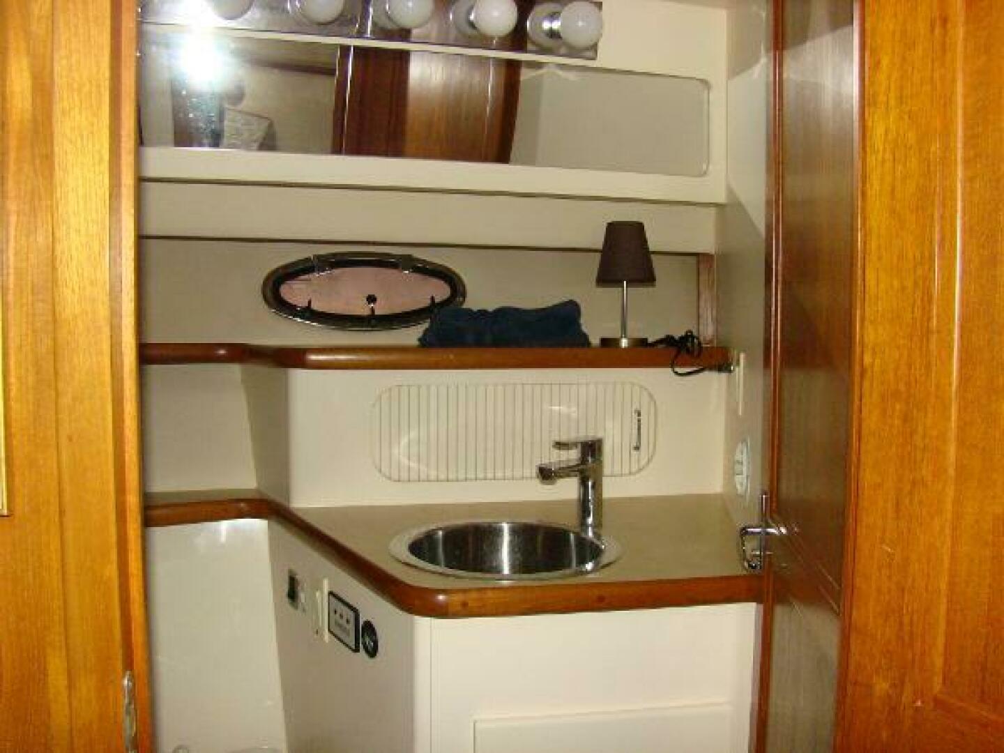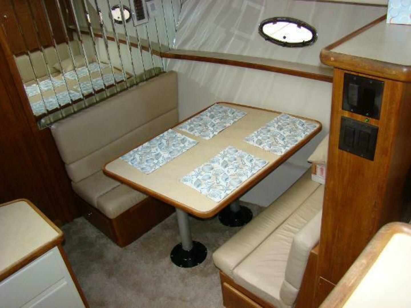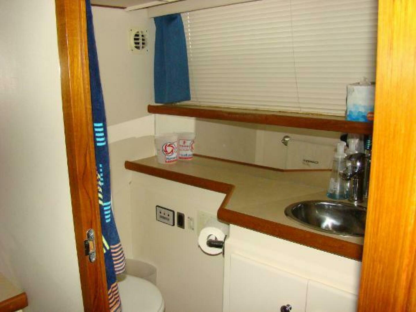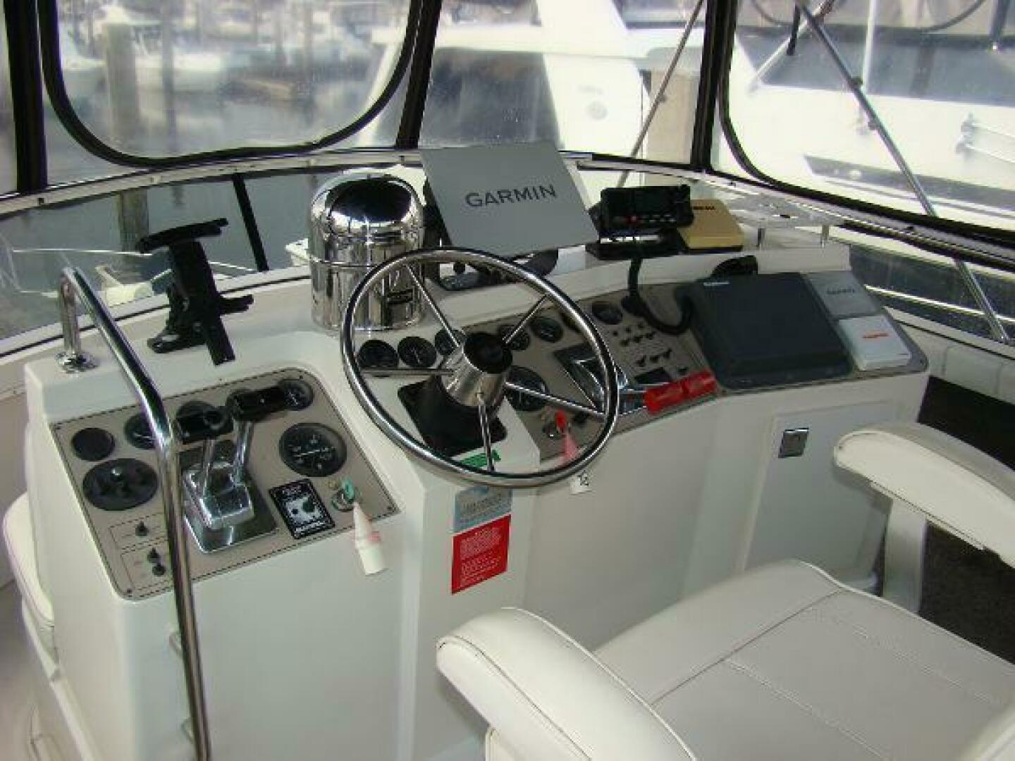The Carver 430 Cockpit Motor Yacht features a luxurious master stateroom, with a large inner-spring berth and private head compartment complete with shower and vanity. A spacious aft deck with hard top and enclosure provides superior protection from the sun and weather. The 430's spacious salon offers plenty of comfortable seating as well as an entertainment center. The fully equipped galley is laid out to make meal or snack preparation easy and enjoyable.