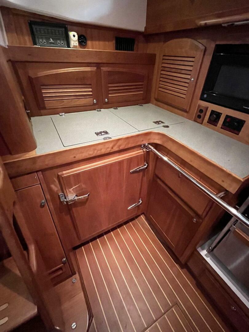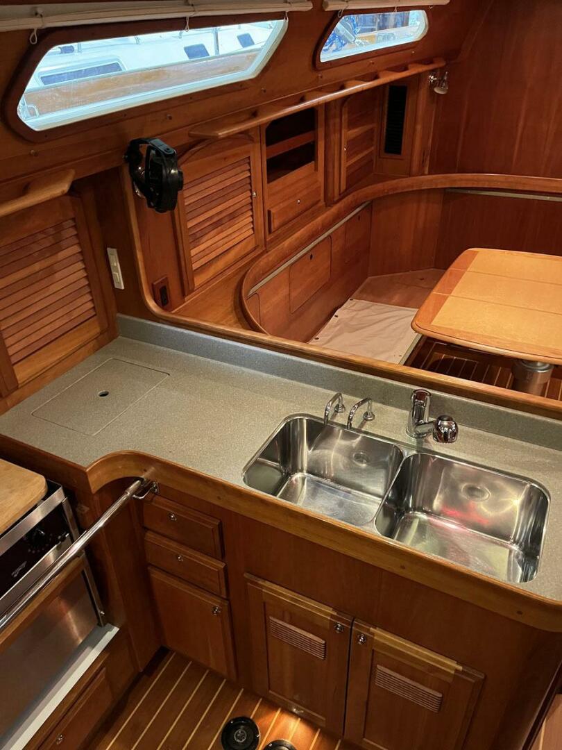 Nicely equipped with Harken electric headsail furling, Leisure Furl boom furling, generator, watermaker, bow thruster, dinghy davits and electric winches. Maintained by Great Island Boatyard, one of New England’s finest boatyards.