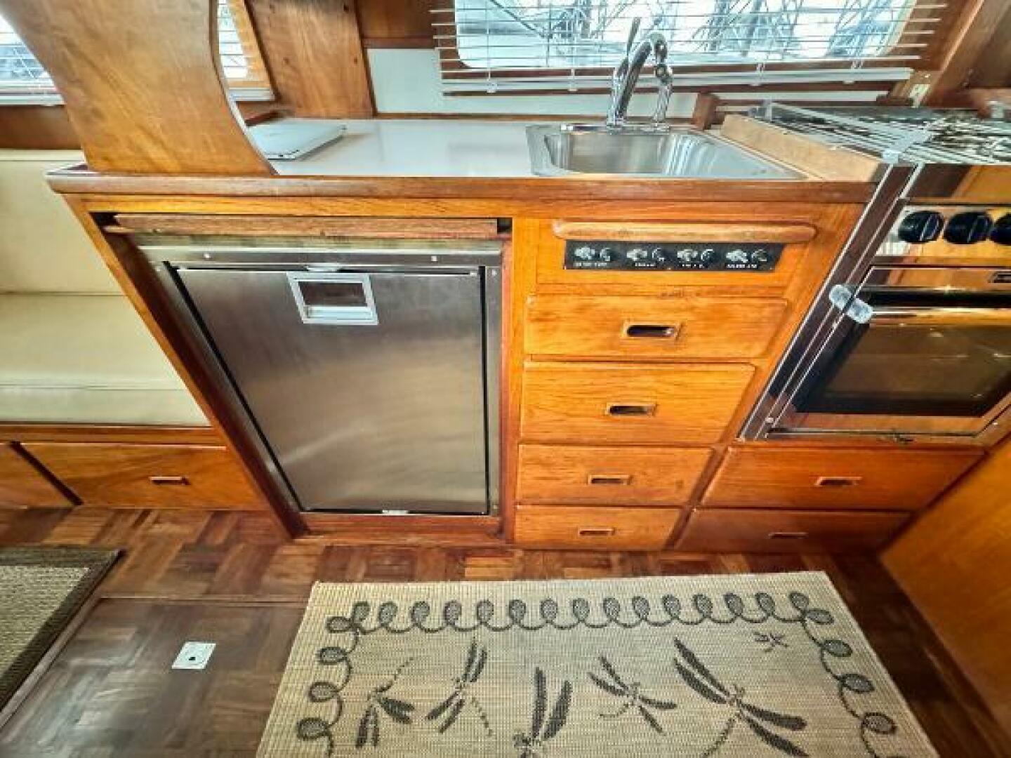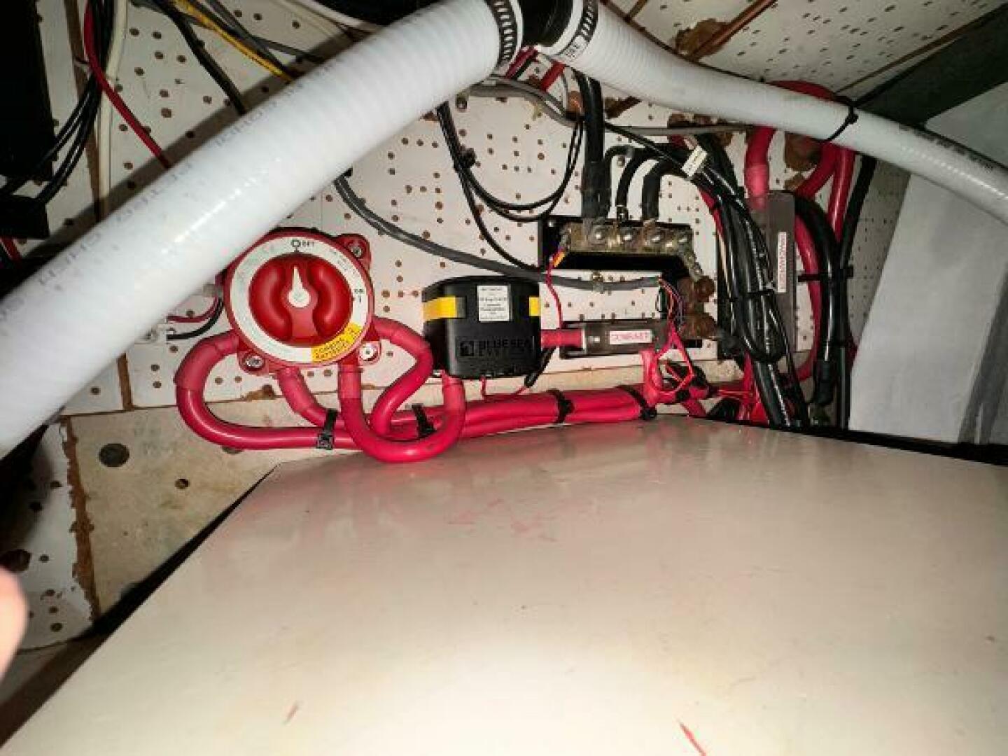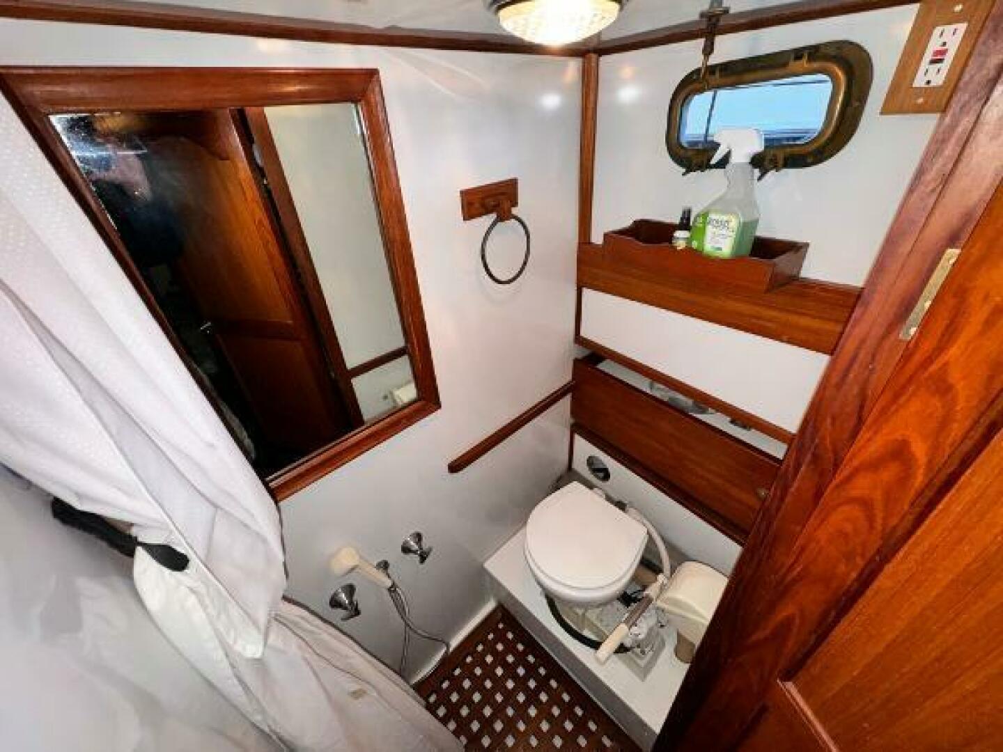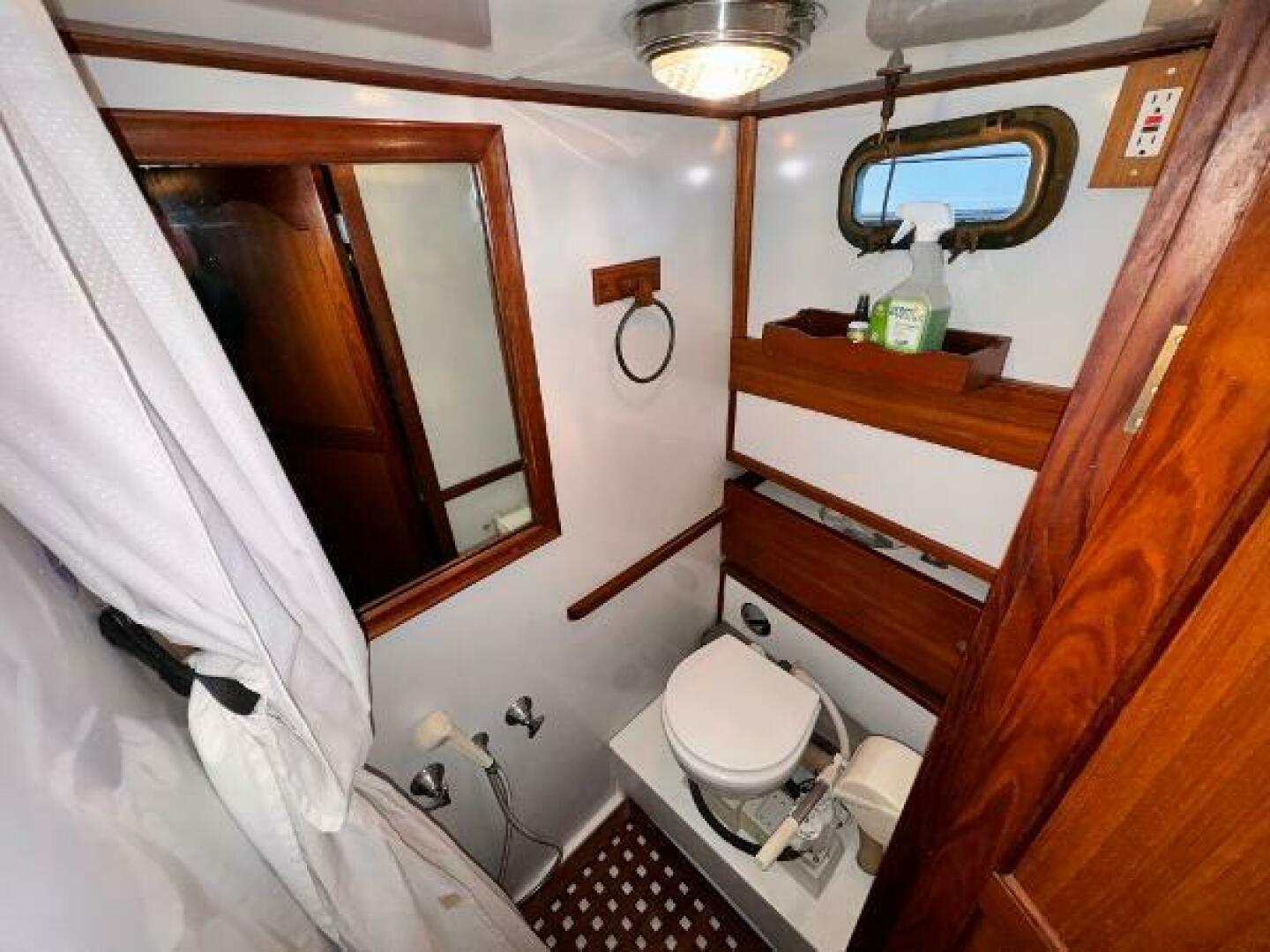 - Vacuflush marine toilet at aft head with 20 gallon holding tank