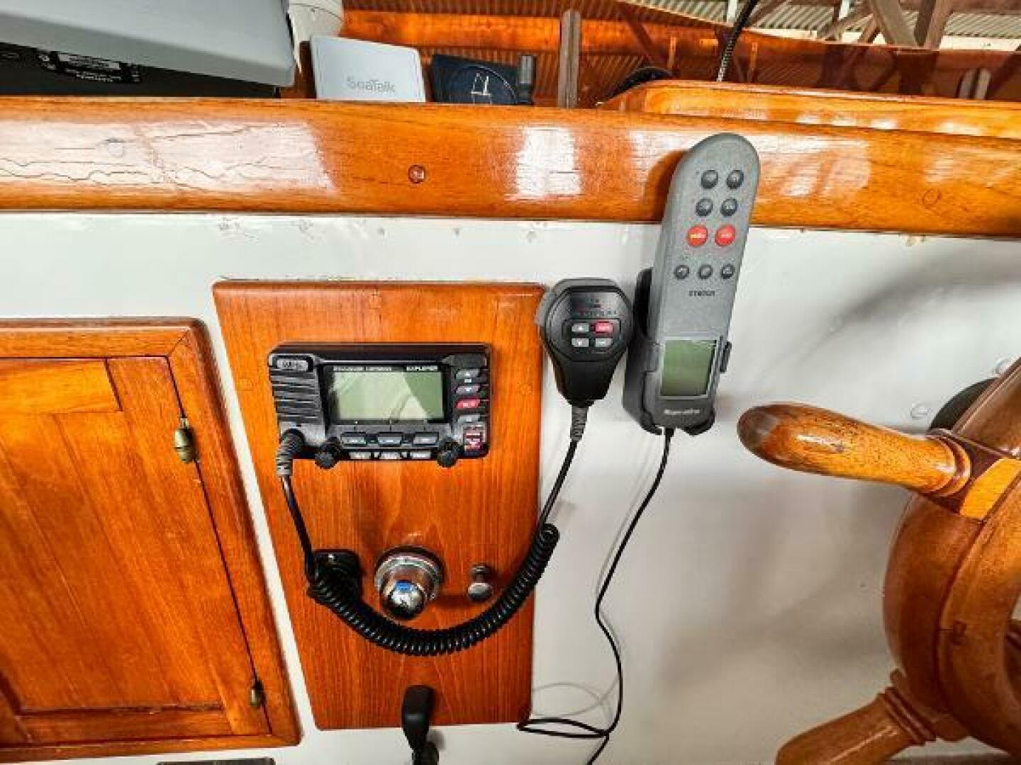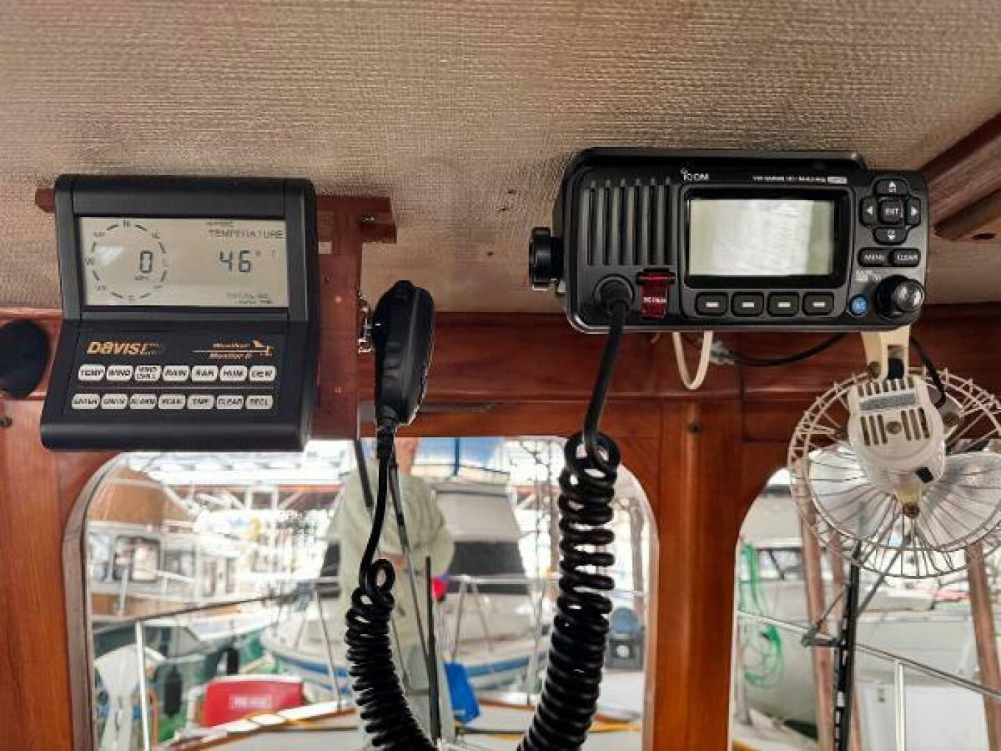 - Icom VHF at helm with hailer