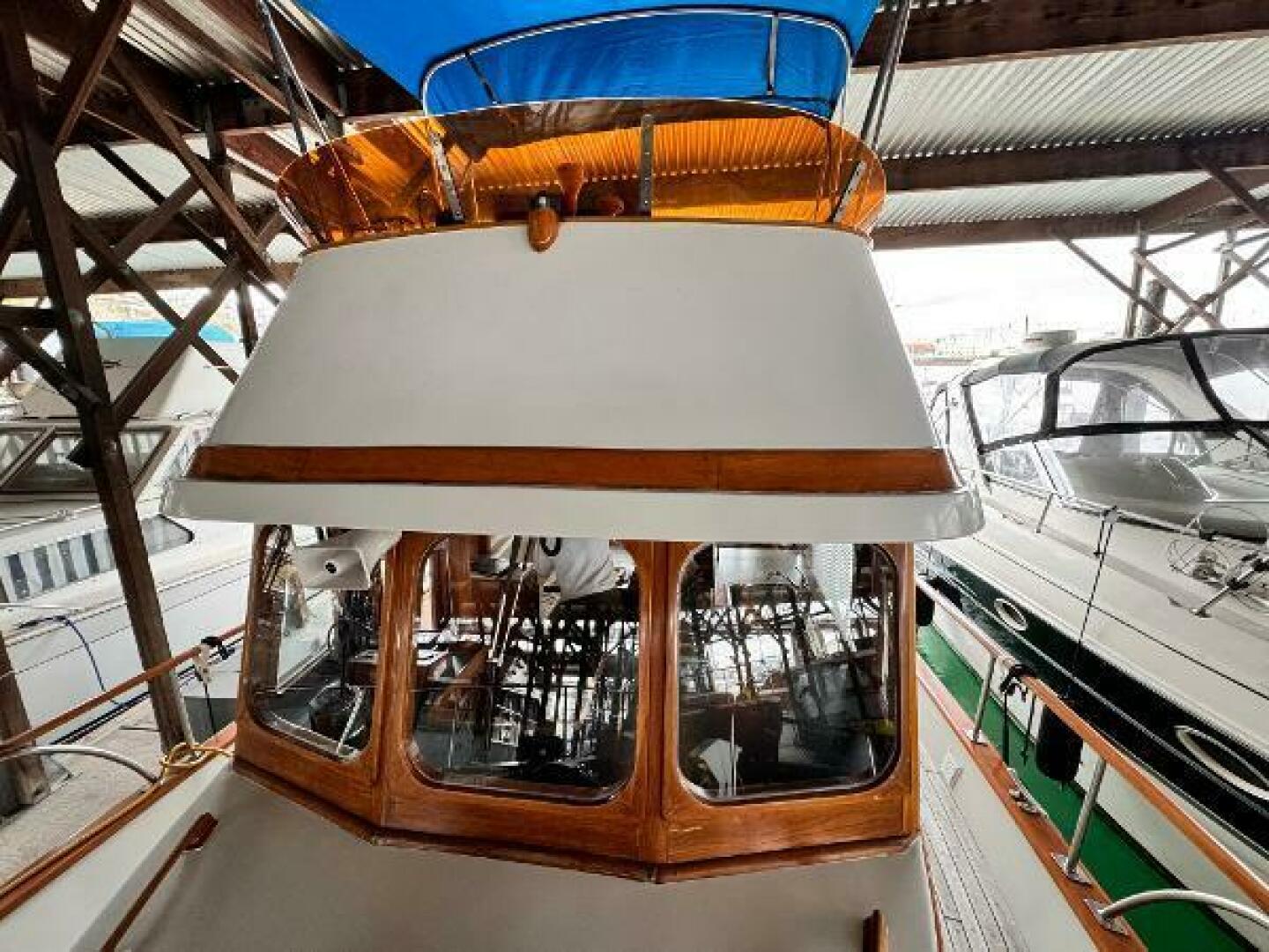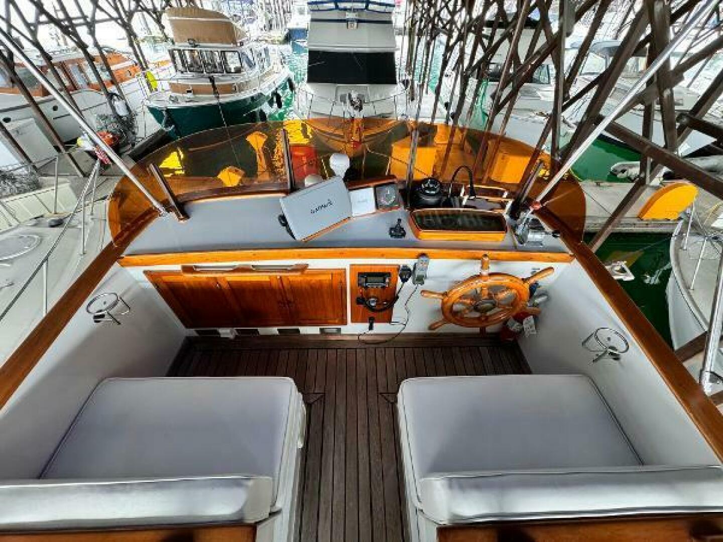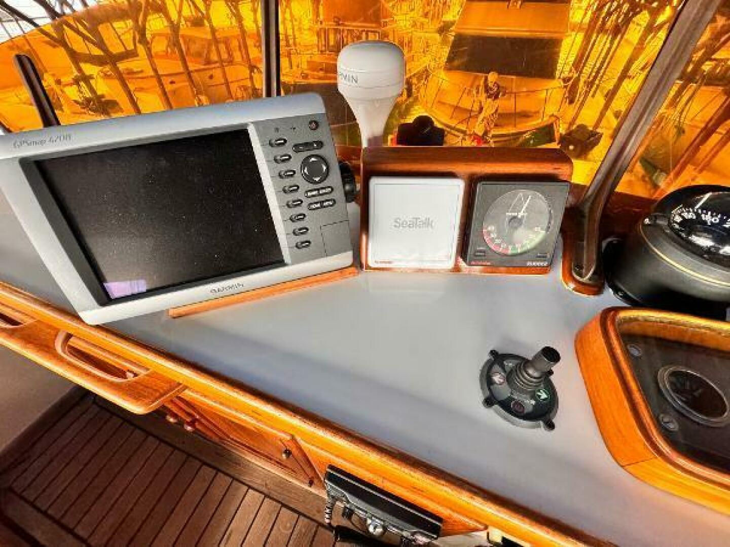 - Garmin 4208 plotter with radar/sounder interface at flybridge