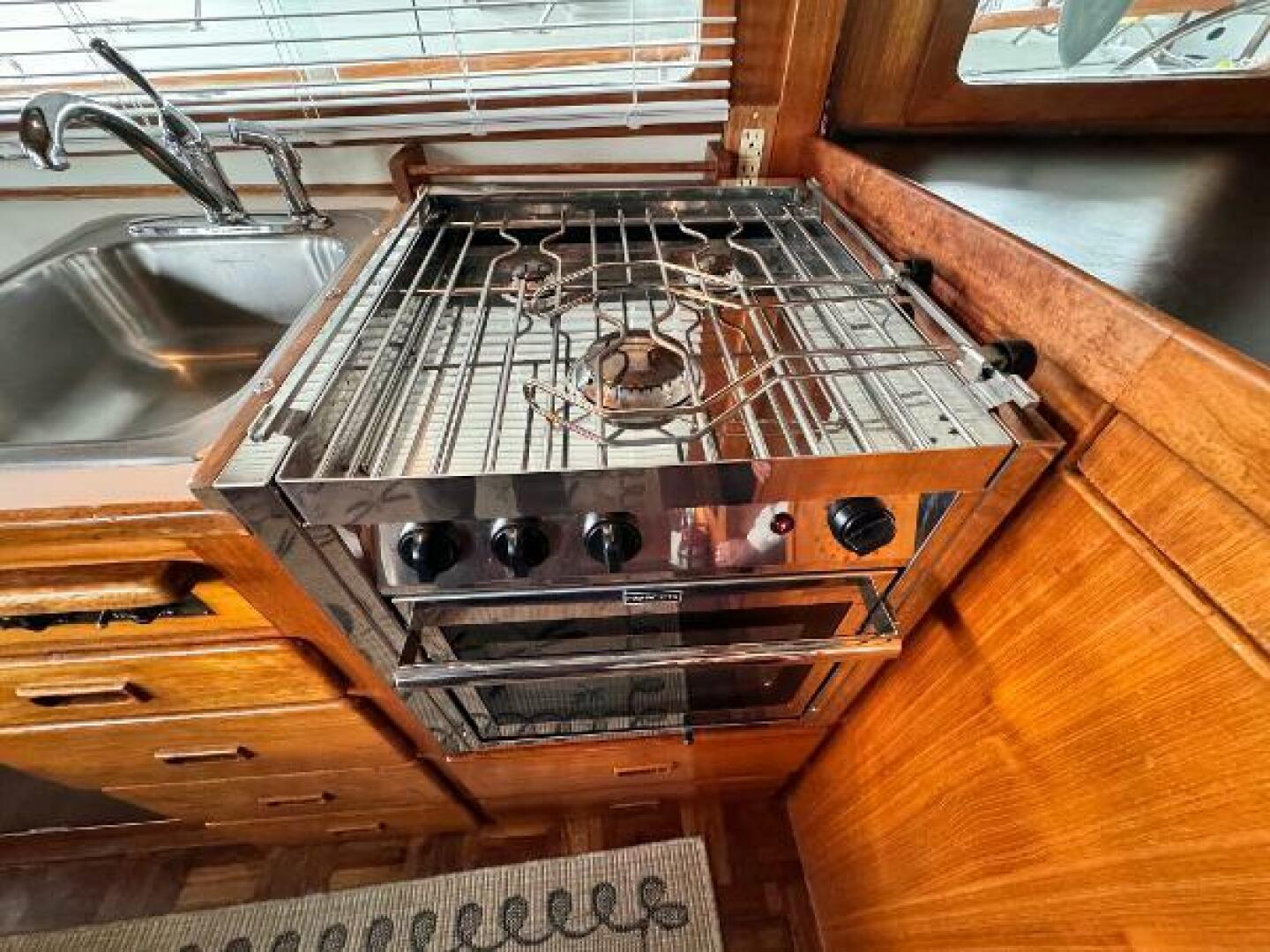 - Force 10, 3 burner propane stove/oven. NOTE: pezio lighting not operational