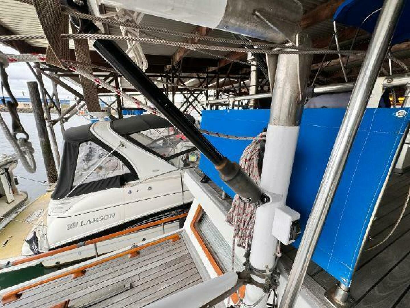 - Mast, boom, radar mount and spreader bar rebuilt, spruce, folding with worm drive electric ram