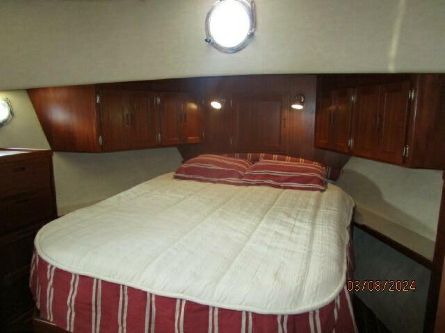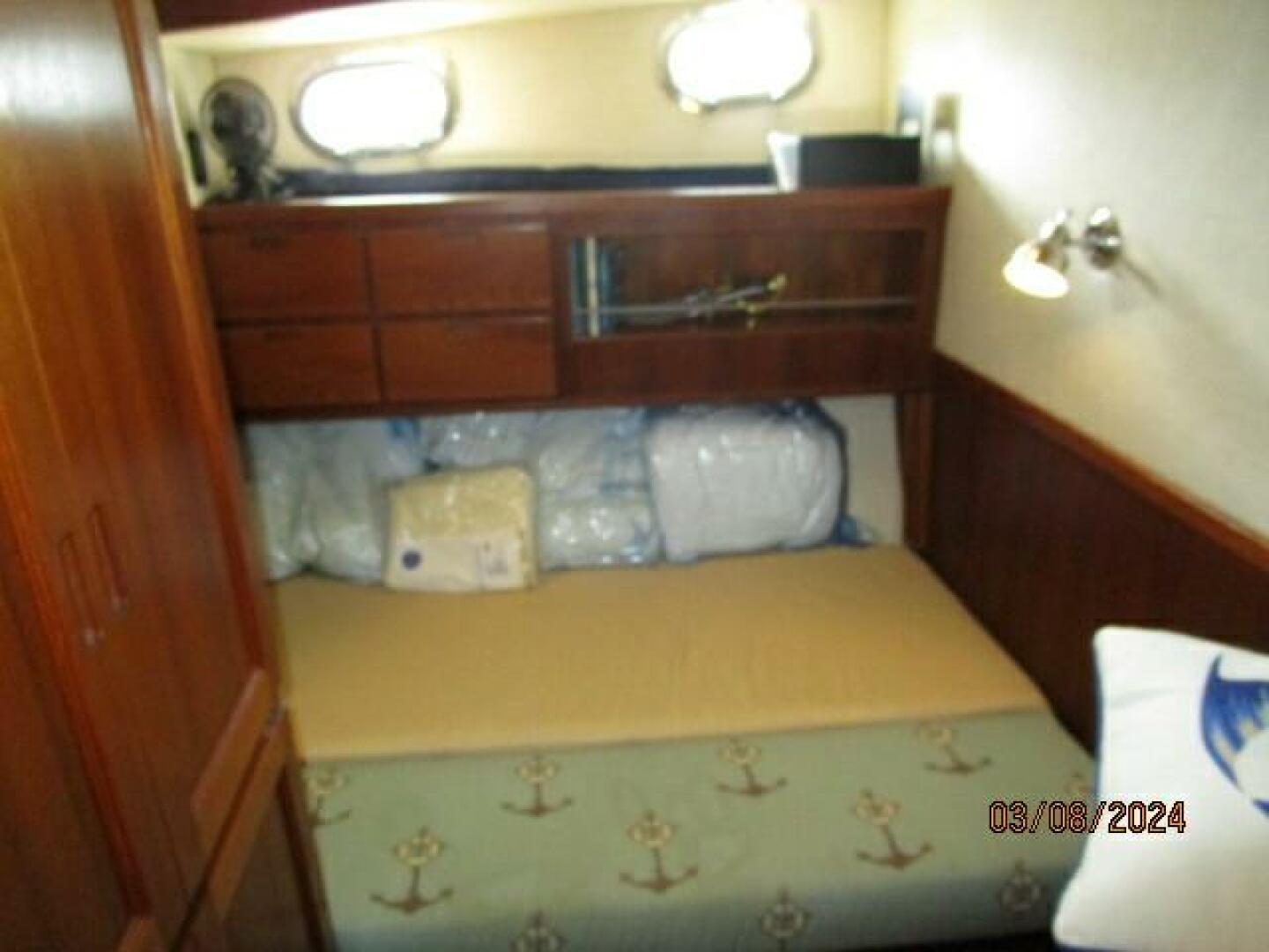 The head room in the salon is 6'5", 6'4" on the flybridge, 6'7" in the pilothouse, 6'3" in the guest stateroom, 6'5" in the guest shower, 7'5" in the master stateroom and 6'5" in the master stateroom shower. The master stateroom berth is 6'4" long and the guest stateroom berth is also 6'4" long.