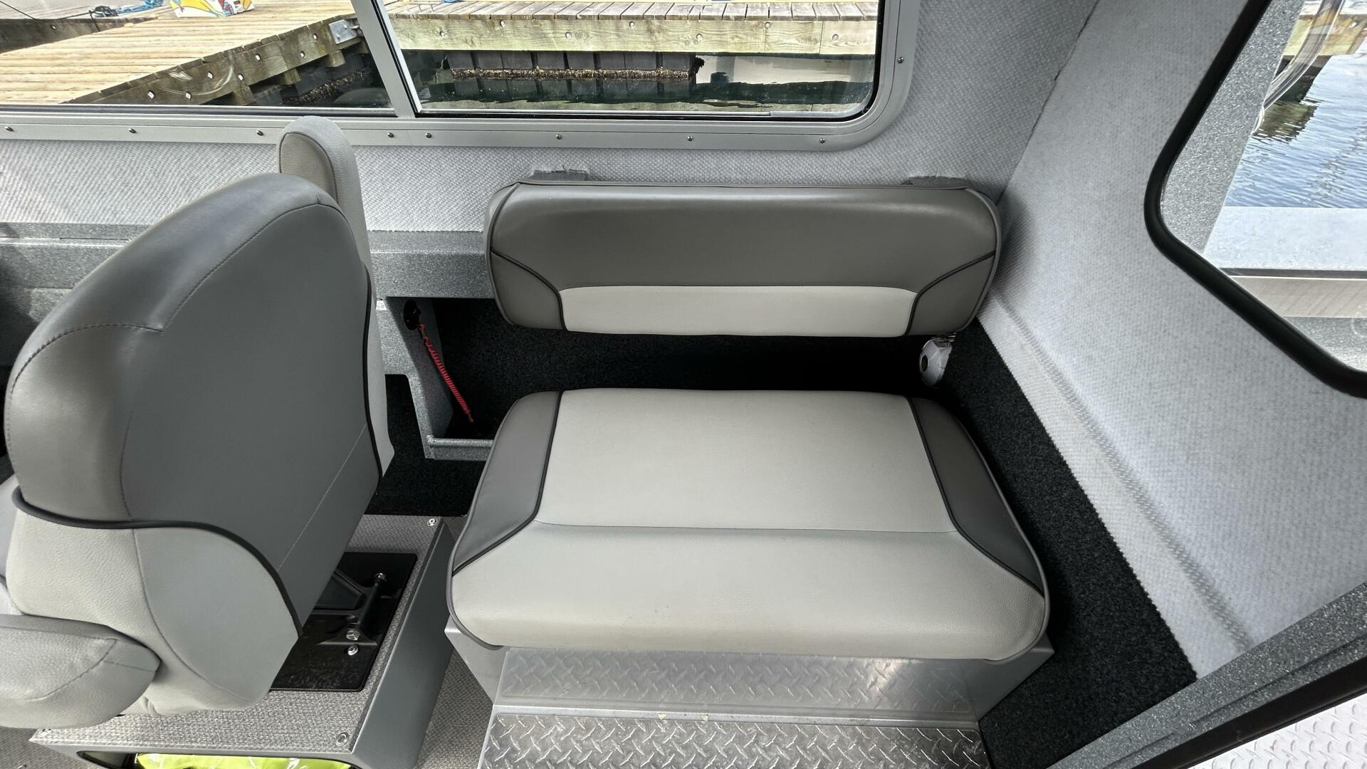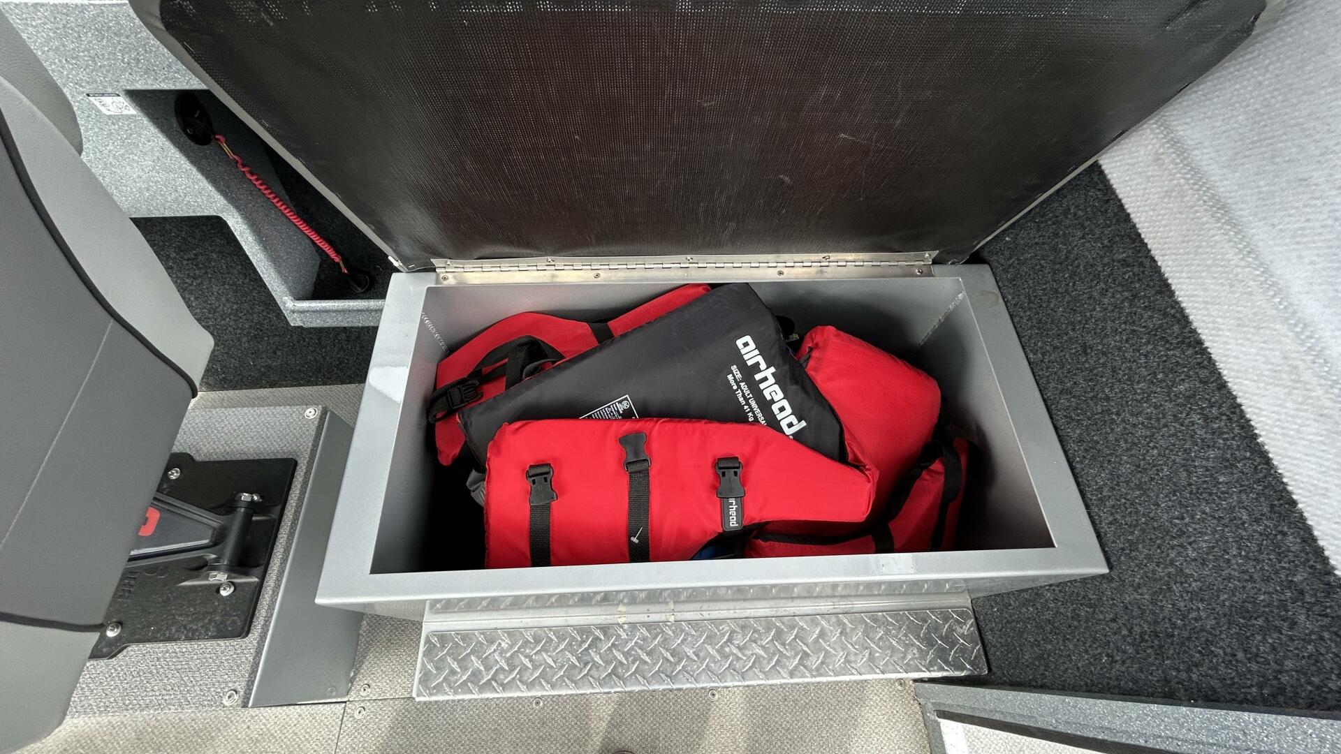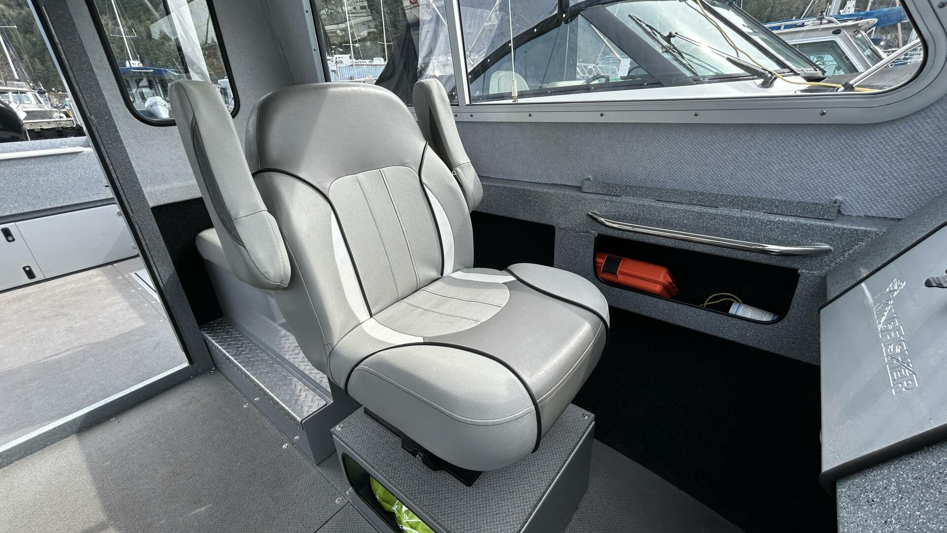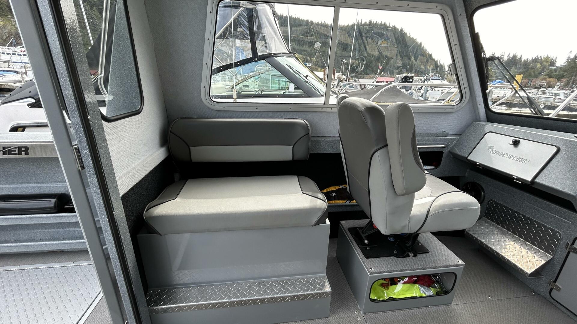 2 Fishmaster XL seats on silver painted aluminum storage boxes with pedestals