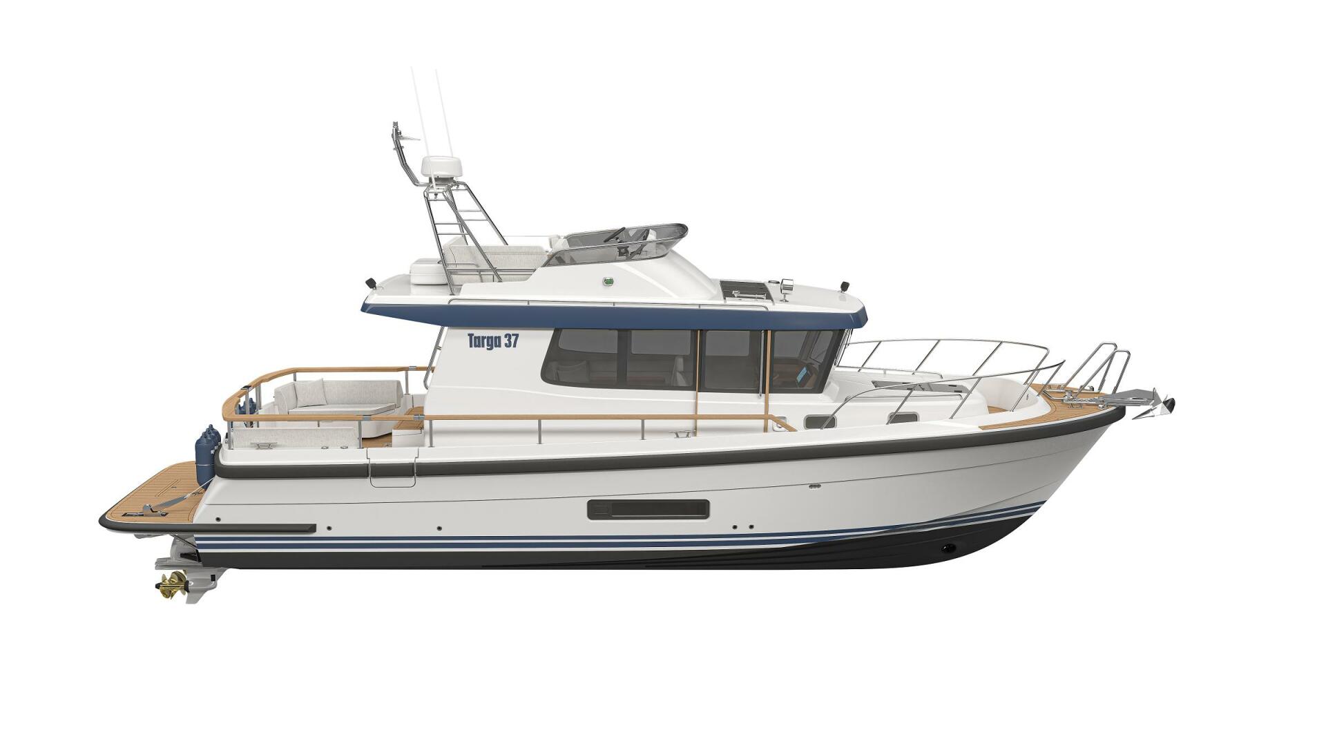 | Notable Upgrades: Aft cockpit seating inspired by Targa 46 & 41 — deeper, more supportive lounges for elevated comfort. Side hull access doors — practical, easy boarding directly from the dock. Wider beam — unlocks smarter ergonomics and improved onboard flow. Full aft galley — premium 46/41-class functionality on a 37-foot platform. Recessed window design (Targa 41 style) — a refined, modern profile. New hull portlights — brighter midships accommodations with enhanced natural light. |