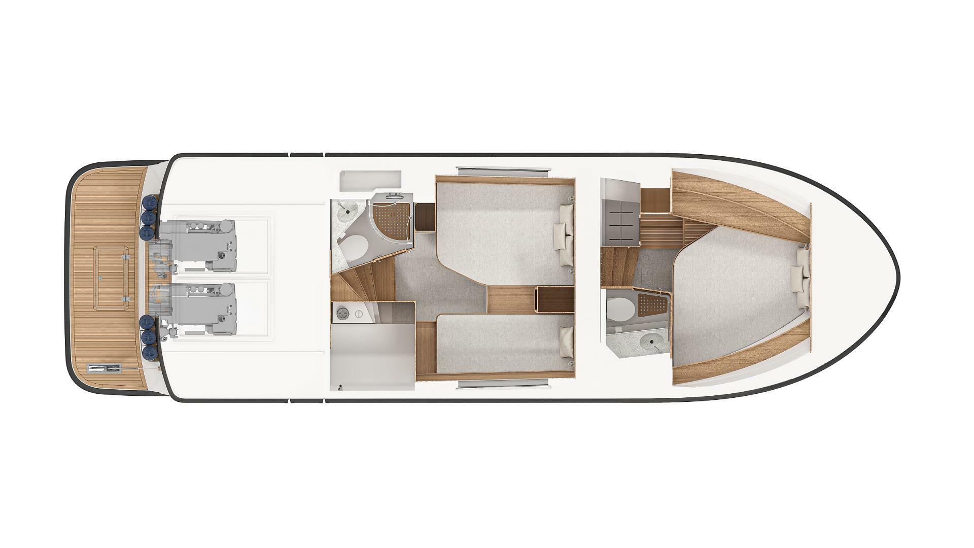 A subtle increase in beam provides meaningful gains in interior and exterior ergonomics. The added width improves circulation around the deck, enhances seating proportions, and allows for more intuitive placement of storage and amenities without compromising performance.