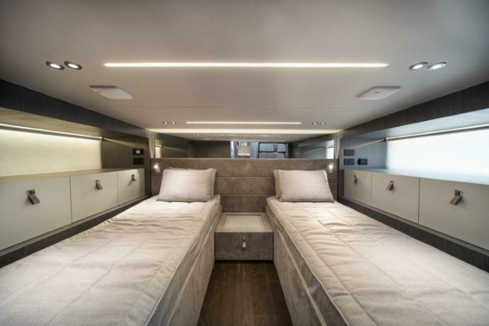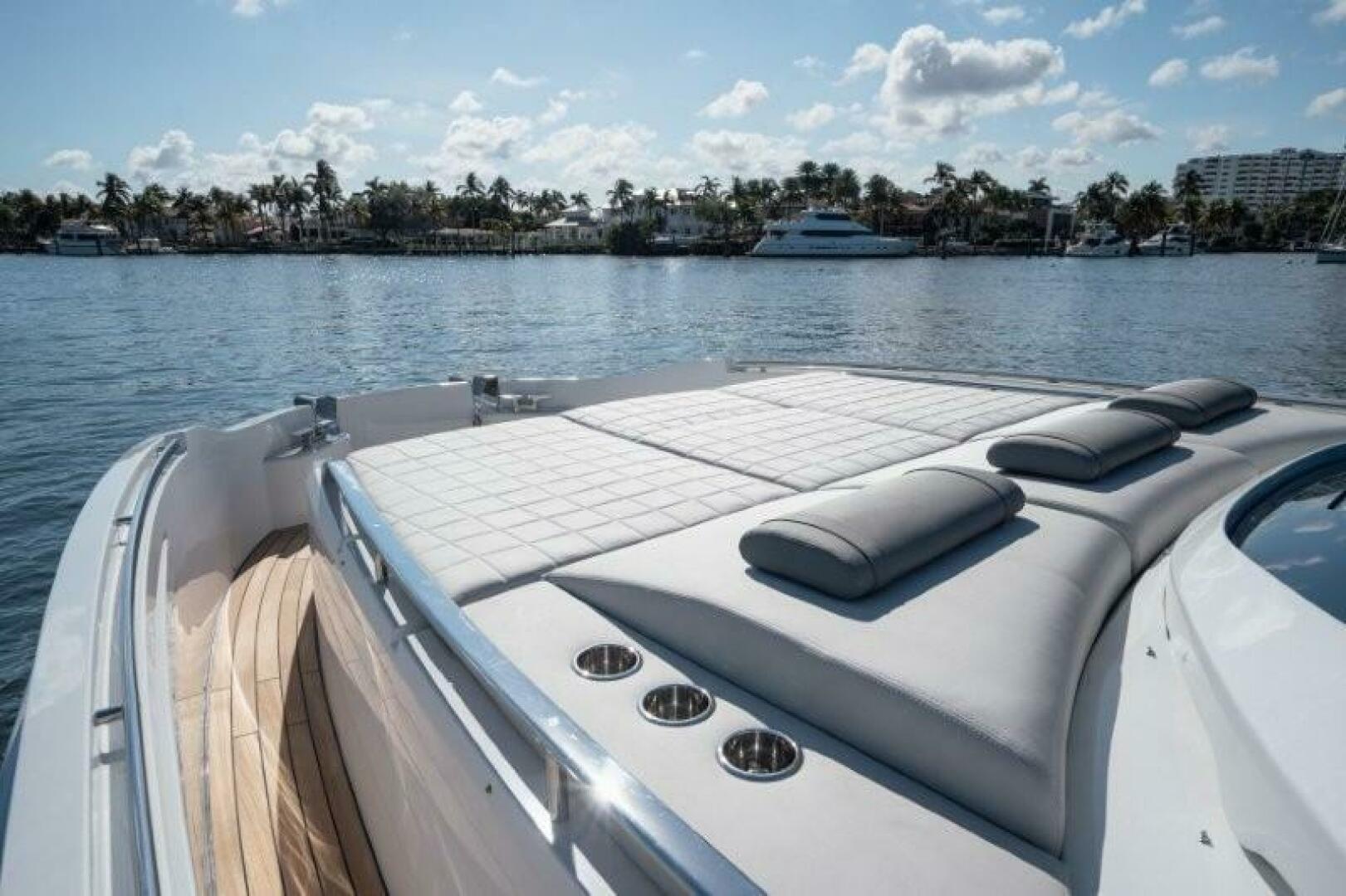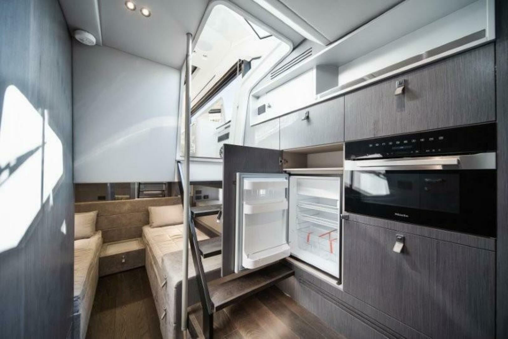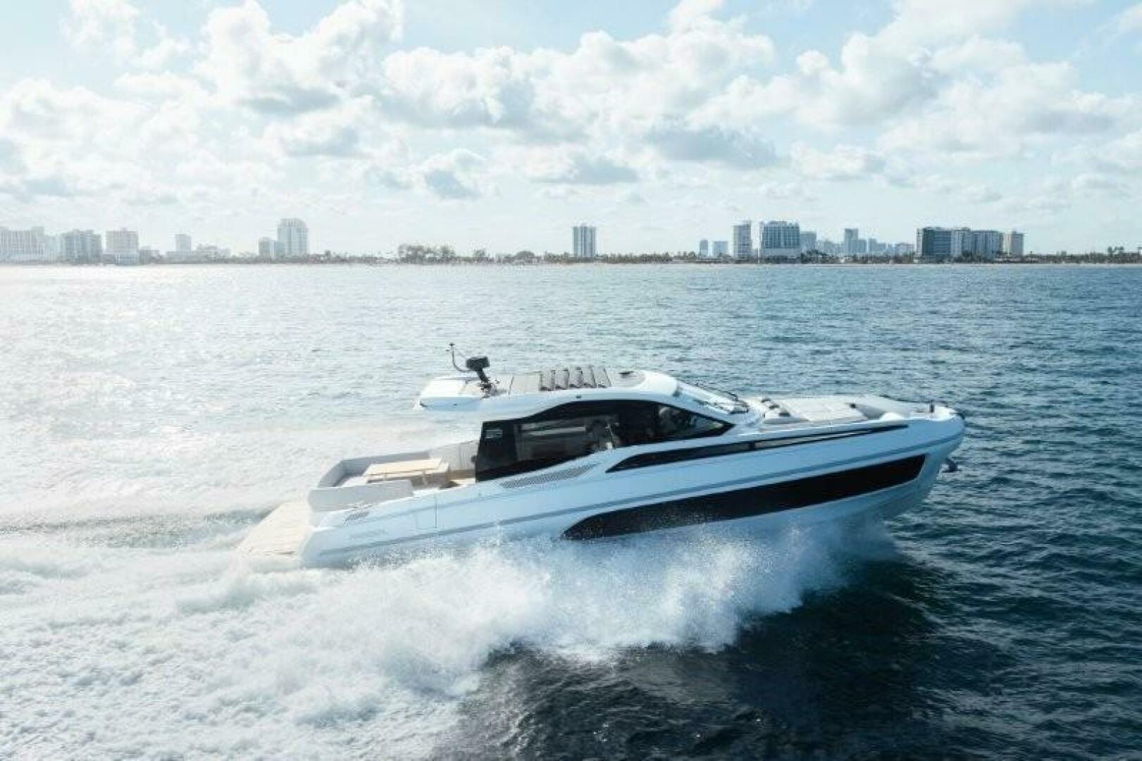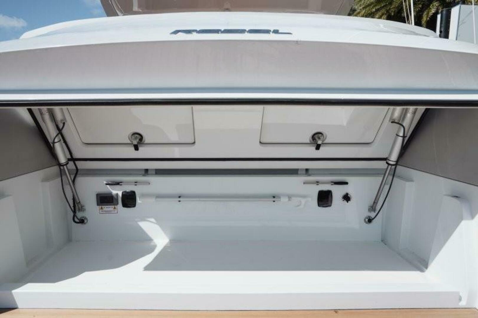 Experience luxury and innovation with the SACS Rebel 50 | G, a stunning vessel crafted in collaboration with designer Christian Grande. Seamlessly blending classic rib aesthetics with avant-garde design, it occupies a niche between traditional RIB and open boats. Standout features include sleek profiles and flush glazing, offering a seamless transition between interior and exterior. Choose rear glazing for enhanced versatility. Exterior layouts offer spaciousness, while below deck, one or two cabins provide ample storage and privacy. Powered by twin Volvo Penta IPS 950hp engines, stand out with the captivating Stingray color.