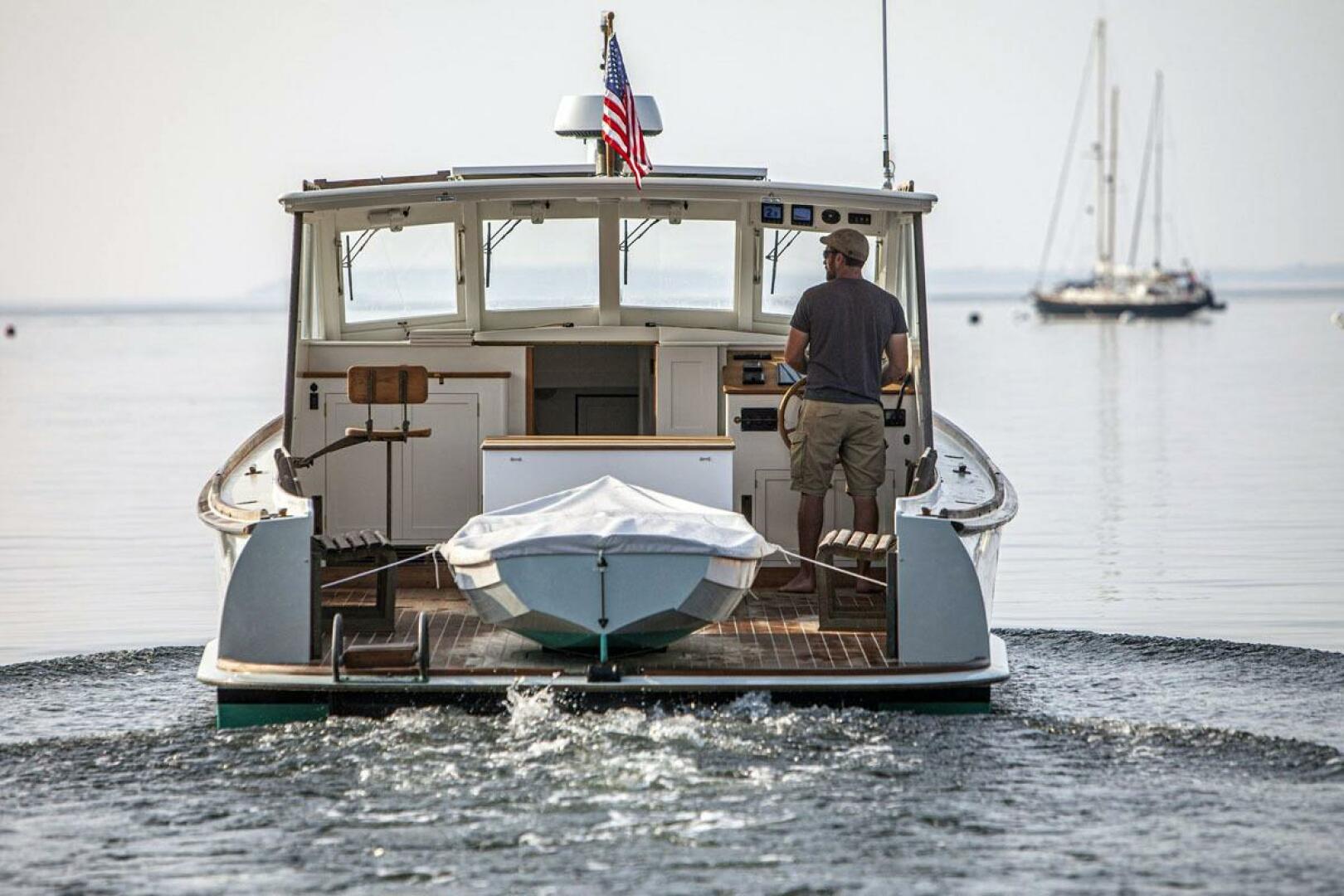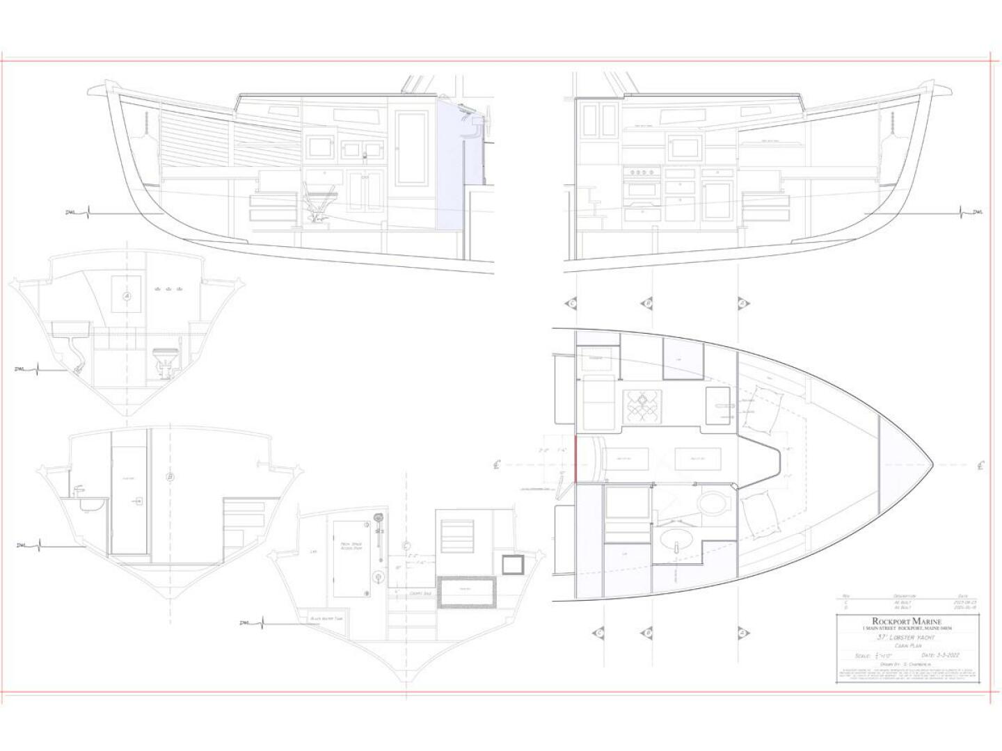 Originally conceived by a discerning and experienced yachting family, the R37 was designed and built at the renowned Rockport Marine (Rockport, ME), and influenced by classic lobster yachts of the 1950’s—boats known for their seakindliness, efficiency, and comfortable ride. Modern adjustments include a hull form that combines traditional “built-down” shape for comfort and lower engine position with hard chines for higher speed and spray deflection. Top speed of 24 knots makes covering ground fast and effortless. Roomy cockpit with open stern for easy tender stowage, and below is understated luxury in the Herreshoff style for cruising comfort and gourmet cooking in the unusually spacious galley. Both on deck and below, every detail and fitting has been exquisitely selected for quality, restrained style and durability.