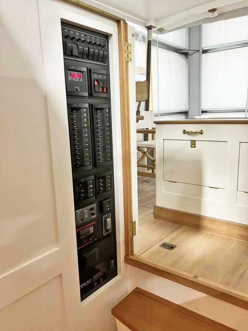 - Electrical / breaker panel: Blue Seas 360 with voltmeter & ammeter for load monitoring