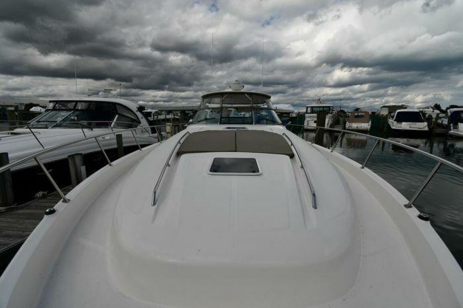 Freshwater / Great Lakes boat since new this vessel features Twin Cummins 480CE Diesel Engine's with 1342 hours - w/Vessel-View (documented 1000 hr service on file.). Notable features include but are not limited to the following: Air-Conditioning & Heat (2-Units - w/Cockpit AC/Heat), (2) Heads (Vacuflush) w/Vanity/Sink/Stall-Shower, Central Vacuum, Washer / Dryer Combination Unit, Cherry Cabinetry, Bow-Thruster, Windlass Anchor w/Forward Pedal-Controls (Note Forward Freshwater Washdown), Custom Canvas Package (see photos) w/Polycarbonate Forward / Side-Windows - Drop-Canvas w/Aft Seat Cover, Cockpit Wet Bar w/Sink/Stainless-Steel Drawer-Style Refrigerator, Onan Generator 600-hrs., Complete Electronics Package (Garmin VHF Marine Radio, Raymarine C120W (Color) Radar w/GPS/Chartplotter, Raymarine Hybrid-Touch GPS/Chartplotter. Raymarine Autopilot), Fusion Premium Sound System w/JL-Audio Speakers, and MUCH more!