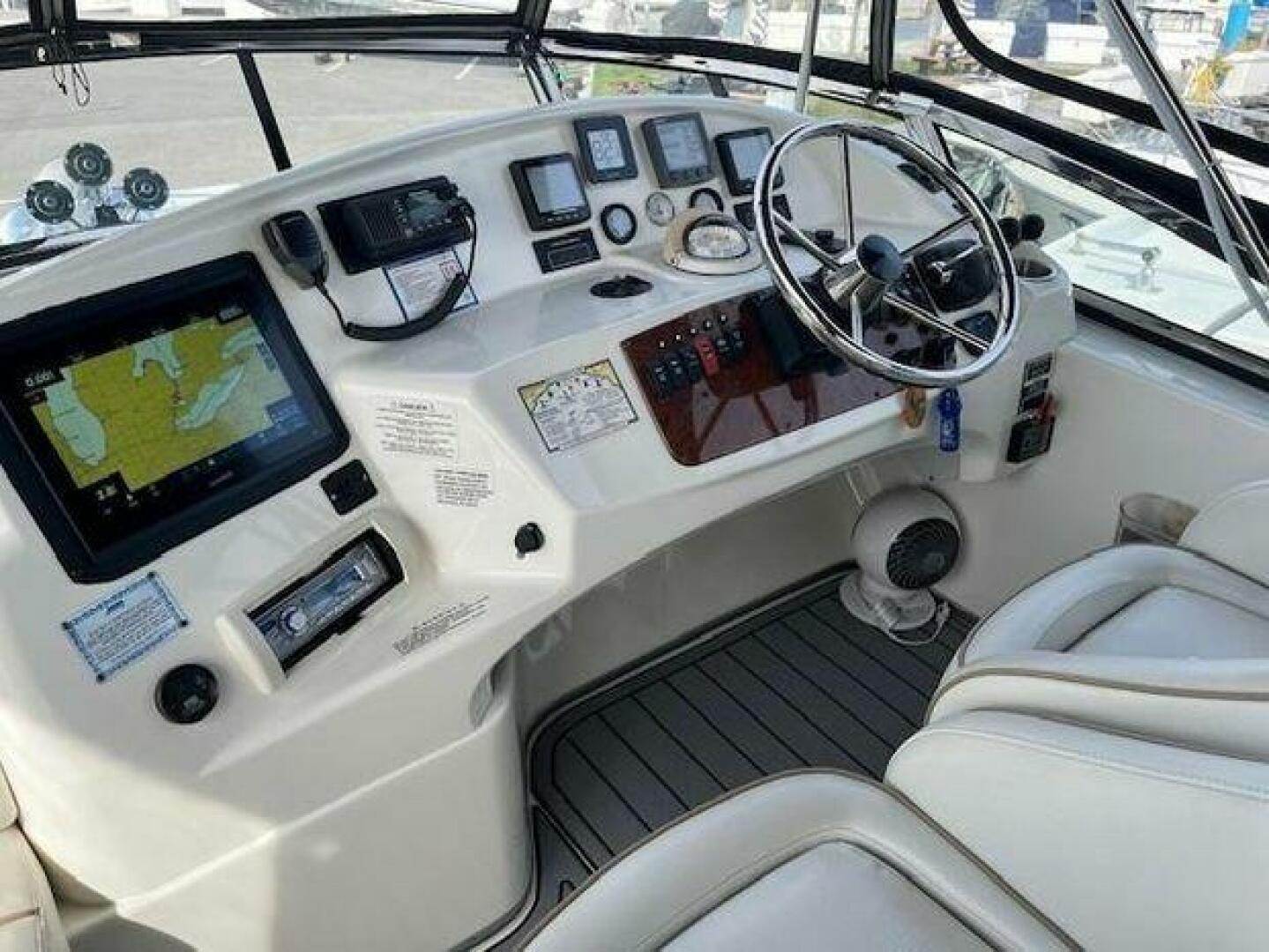 Freshwater / Great Lakes boat since new this vessel features Twin Volvo Penta TAMD75P EDC Diesel Engines (480 HP each) with 1200 original hours. Notable features include but are not limited to the following: Air-Conditioning & Heat (3-Units) (2) Heads (Vacuflush) w/Vanity/Sink/Stall Showers, Central Vacuum System, Kohler 8Kw Generator, Windlass Anchor w/Foot Pedal & Helm Controls, Complete Electronics Package (NEW Garmin FPSMAP 1243XSV Multifunction GPS/Radar/Chartplotter w/US & Canada Navionics & Charts, NEW Garmin Grid 20 Remote Control, NEW Garmin GMR Fantom Dome Radar, Speed Log and Depth Sounder, West Marine Multifunction VHF Marine Radio, Danforth Compass, and Volvo Engine Monitor and Multi-Function Display). Oversized Horn Cluster for Semi-Like Sound. Premium Stereo System w/JL Audio and Amp, (2) LCD-Flat Screen Televisions (Including a Retractable TV in the Salon that Disappears from View. She Features The Main Deck Cabin Boasts an Immense Salon with Convertible Sofa, Loveseat and Entertainment Center, a Superbly Equipped Galley and Separate Dinette Area. Cherry is Featured Throughout the Yacht in Joinery, Doors and Bulkheads in High Gloss and Satin Accents. This Yacht Comes with Supple Leather Seating Throughout and has Six Spacious Berths plus MUCH more!