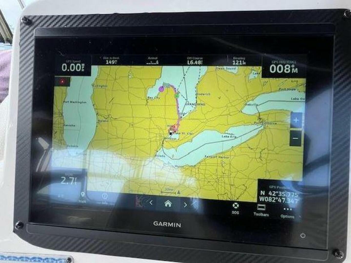 Freshwater / Great Lakes boat since new this vessel features Twin Volvo Penta TAMD75P EDC Diesel Engines (480 HP each) with 1200 original hours. Notable features include but are not limited to the following: Air-Conditioning & Heat (3-Units) (2) Heads (Vacuflush) w/Vanity/Sink/Stall Showers, Central Vacuum System, Kohler 8Kw Generator, Windlass Anchor w/Foot Pedal & Helm Controls, Complete Electronics Package (NEW Garmin FPSMAP 1243XSV Multifunction GPS/Radar/Chartplotter w/US & Canada Navionics & Charts, NEW Garmin Grid 20 Remote Control, NEW Garmin GMR Fantom Dome Radar, Speed Log and Depth Sounder, West Marine Multifunction VHF Marine Radio, Danforth Compass, and Volvo Engine Monitor and Multi-Function Display). Oversized Horn Cluster for Semi-Like Sound. Premium Stereo System w/JL Audio and Amp, (2) LCD-Flat Screen Televisions (Including a Retractable TV in the Salon that Disappears from View. She Features The Main Deck Cabin Boasts an Immense Salon with Convertible Sofa, Loveseat and Entertainment Center, a Superbly Equipped Galley and Separate Dinette Area. Cherry is Featured Throughout the Yacht in Joinery, Doors and Bulkheads in High Gloss and Satin Accents. This Yacht Comes with Supple Leather Seating Throughout and has Six Spacious Berths plus MUCH more!