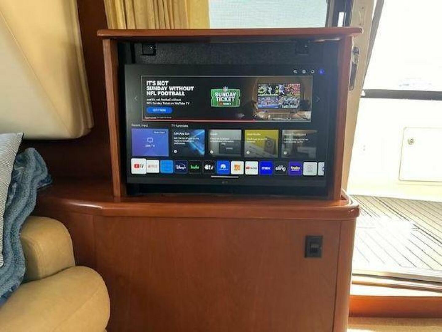 Freshwater / Great Lakes boat since new this vessel features Twin Volvo Penta TAMD75P EDC Diesel Engines (480 HP each) with 1200 original hours. Notable features include but are not limited to the following: Air-Conditioning & Heat (3-Units) (2) Heads (Vacuflush) w/Vanity/Sink/Stall Showers, Central Vacuum System, Kohler 8Kw Generator, Windlass Anchor w/Foot Pedal & Helm Controls, Complete Electronics Package (NEW Garmin FPSMAP 1243XSV Multifunction GPS/Radar/Chartplotter w/US & Canada Navionics & Charts, NEW Garmin Grid 20 Remote Control, NEW Garmin GMR Fantom Dome Radar, Speed Log and Depth Sounder, West Marine Multifunction VHF Marine Radio, Danforth Compass, and Volvo Engine Monitor and Multi-Function Display). Oversized Horn Cluster for Semi-Like Sound. Premium Stereo System w/JL Audio and Amp, (2) LCD-Flat Screen Televisions (Including a Retractable TV in the Salon that Disappears from View. She Features The Main Deck Cabin Boasts an Immense Salon with Convertible Sofa, Loveseat and Entertainment Center, a Superbly Equipped Galley and Separate Dinette Area. Cherry is Featured Throughout the Yacht in Joinery, Doors and Bulkheads in High Gloss and Satin Accents. This Yacht Comes with Supple Leather Seating Throughout and has Six Spacious Berths plus MUCH more!