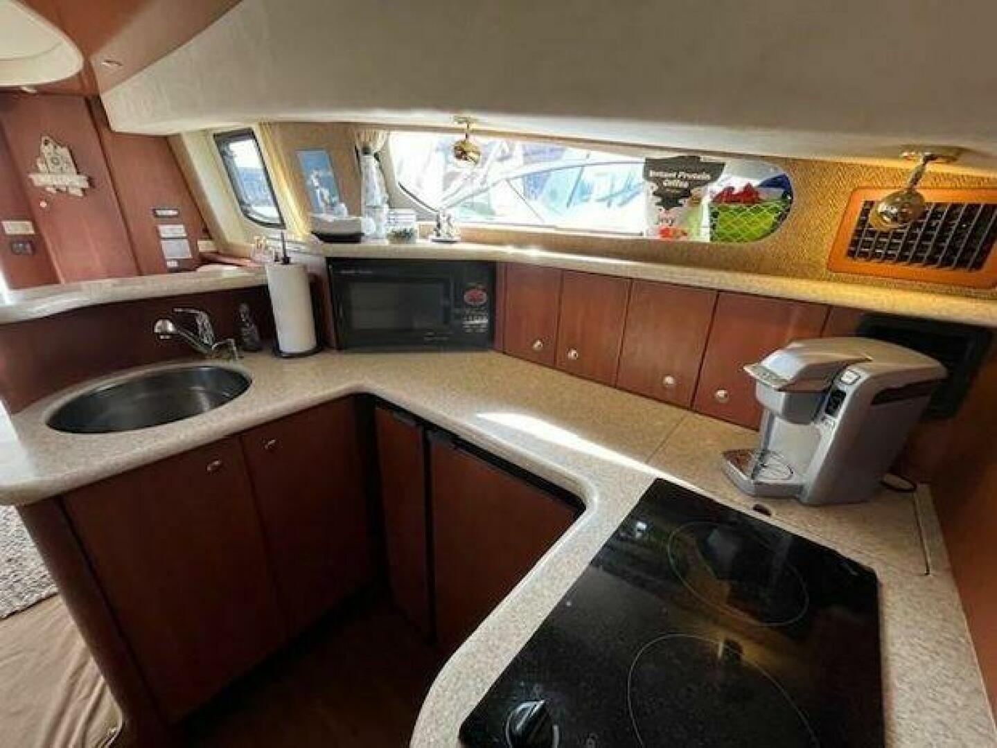 Freshwater / Great Lakes boat since new this vessel features Twin Volvo Penta TAMD75P EDC Diesel Engines (480 HP each) with 1200 original hours. Notable features include but are not limited to the following: Air-Conditioning & Heat (3-Units) (2) Heads (Vacuflush) w/Vanity/Sink/Stall Showers, Central Vacuum System, Kohler 8Kw Generator, Windlass Anchor w/Foot Pedal & Helm Controls, Complete Electronics Package (NEW Garmin FPSMAP 1243XSV Multifunction GPS/Radar/Chartplotter w/US & Canada Navionics & Charts, NEW Garmin Grid 20 Remote Control, NEW Garmin GMR Fantom Dome Radar, Speed Log and Depth Sounder, West Marine Multifunction VHF Marine Radio, Danforth Compass, and Volvo Engine Monitor and Multi-Function Display). Oversized Horn Cluster for Semi-Like Sound. Premium Stereo System w/JL Audio and Amp, (2) LCD-Flat Screen Televisions (Including a Retractable TV in the Salon that Disappears from View. She Features The Main Deck Cabin Boasts an Immense Salon with Convertible Sofa, Loveseat and Entertainment Center, a Superbly Equipped Galley and Separate Dinette Area. Cherry is Featured Throughout the Yacht in Joinery, Doors and Bulkheads in High Gloss and Satin Accents. This Yacht Comes with Supple Leather Seating Throughout and has Six Spacious Berths plus MUCH more!