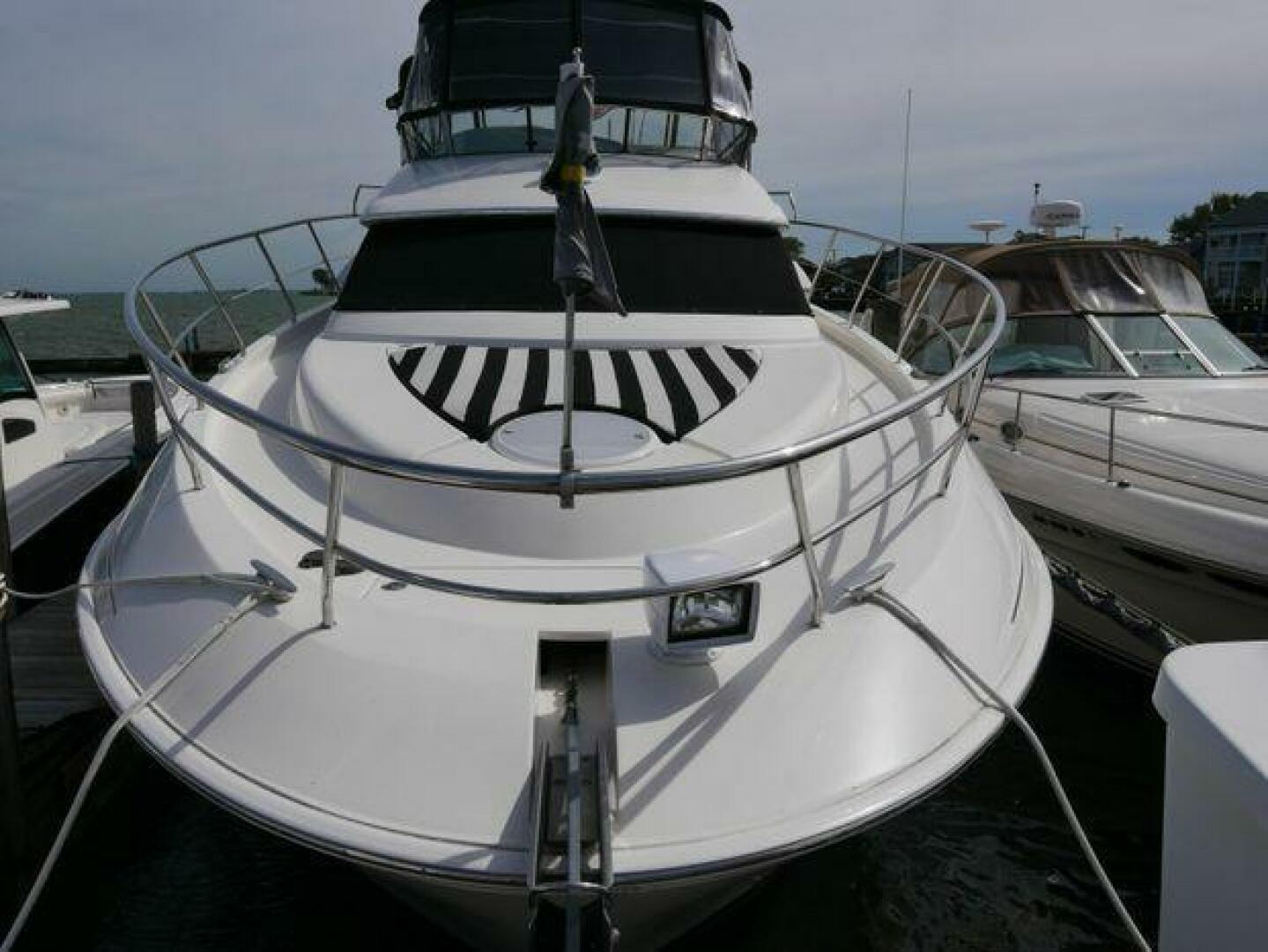 Freshwater / Great Lakes boat since new this vessel features Twin Volvo Penta TAMD75P EDC Diesel Engines (480 HP each) with 1200 original hours. Notable features include but are not limited to the following: Air-Conditioning & Heat (3-Units) (2) Heads (Vacuflush) w/Vanity/Sink/Stall Showers, Central Vacuum System, Kohler 8Kw Generator, Windlass Anchor w/Foot Pedal & Helm Controls, Complete Electronics Package (NEW Garmin FPSMAP 1243XSV Multifunction GPS/Radar/Chartplotter w/US & Canada Navionics & Charts, NEW Garmin Grid 20 Remote Control, NEW Garmin GMR Fantom Dome Radar, Speed Log and Depth Sounder, West Marine Multifunction VHF Marine Radio, Danforth Compass, and Volvo Engine Monitor and Multi-Function Display). Oversized Horn Cluster for Semi-Like Sound. Premium Stereo System w/JL Audio and Amp, (2) LCD-Flat Screen Televisions (Including a Retractable TV in the Salon that Disappears from View. She Features The Main Deck Cabin Boasts an Immense Salon with Convertible Sofa, Loveseat and Entertainment Center, a Superbly Equipped Galley and Separate Dinette Area. Cherry is Featured Throughout the Yacht in Joinery, Doors and Bulkheads in High Gloss and Satin Accents. This Yacht Comes with Supple Leather Seating Throughout and has Six Spacious Berths plus MUCH more!
