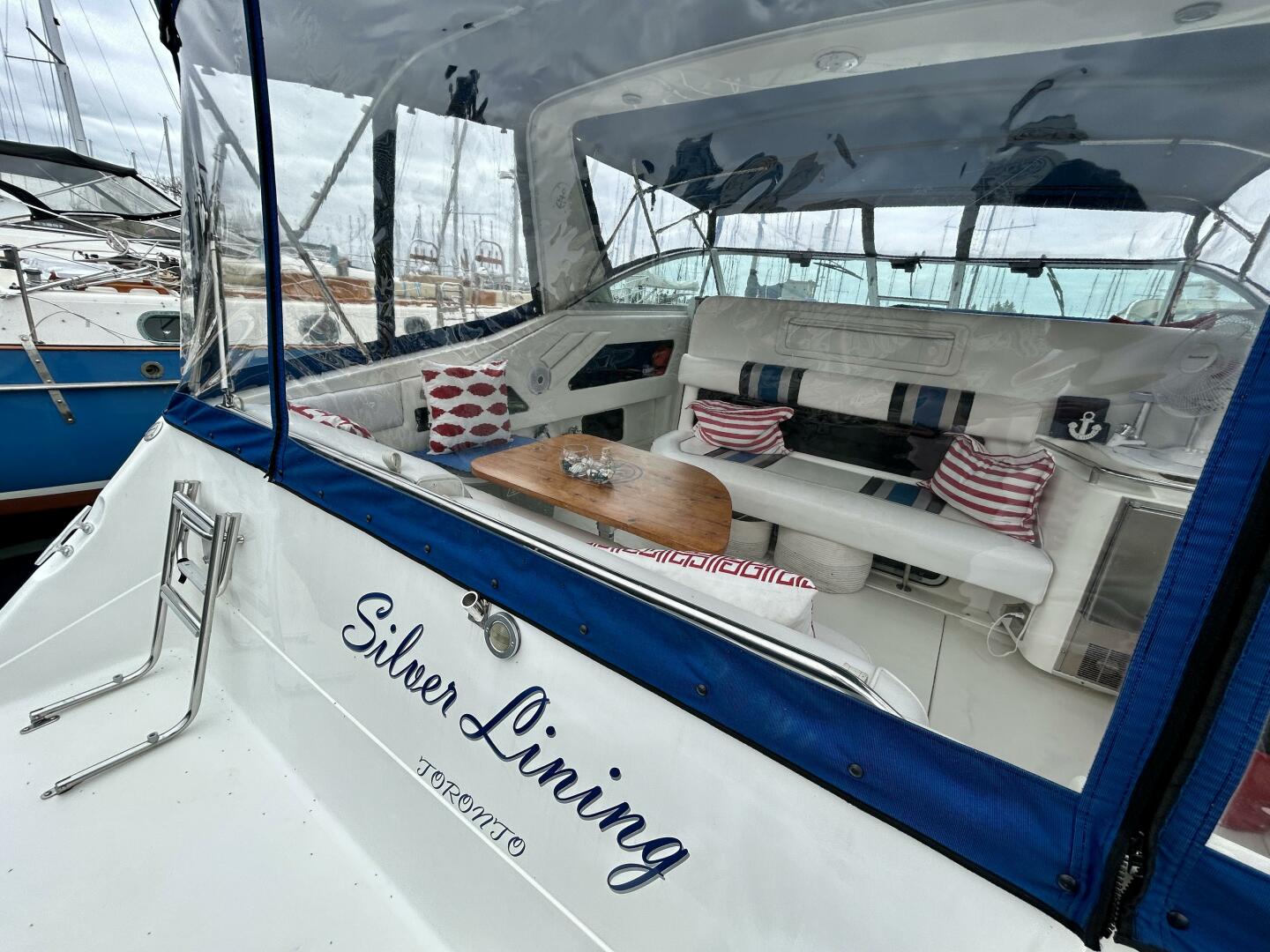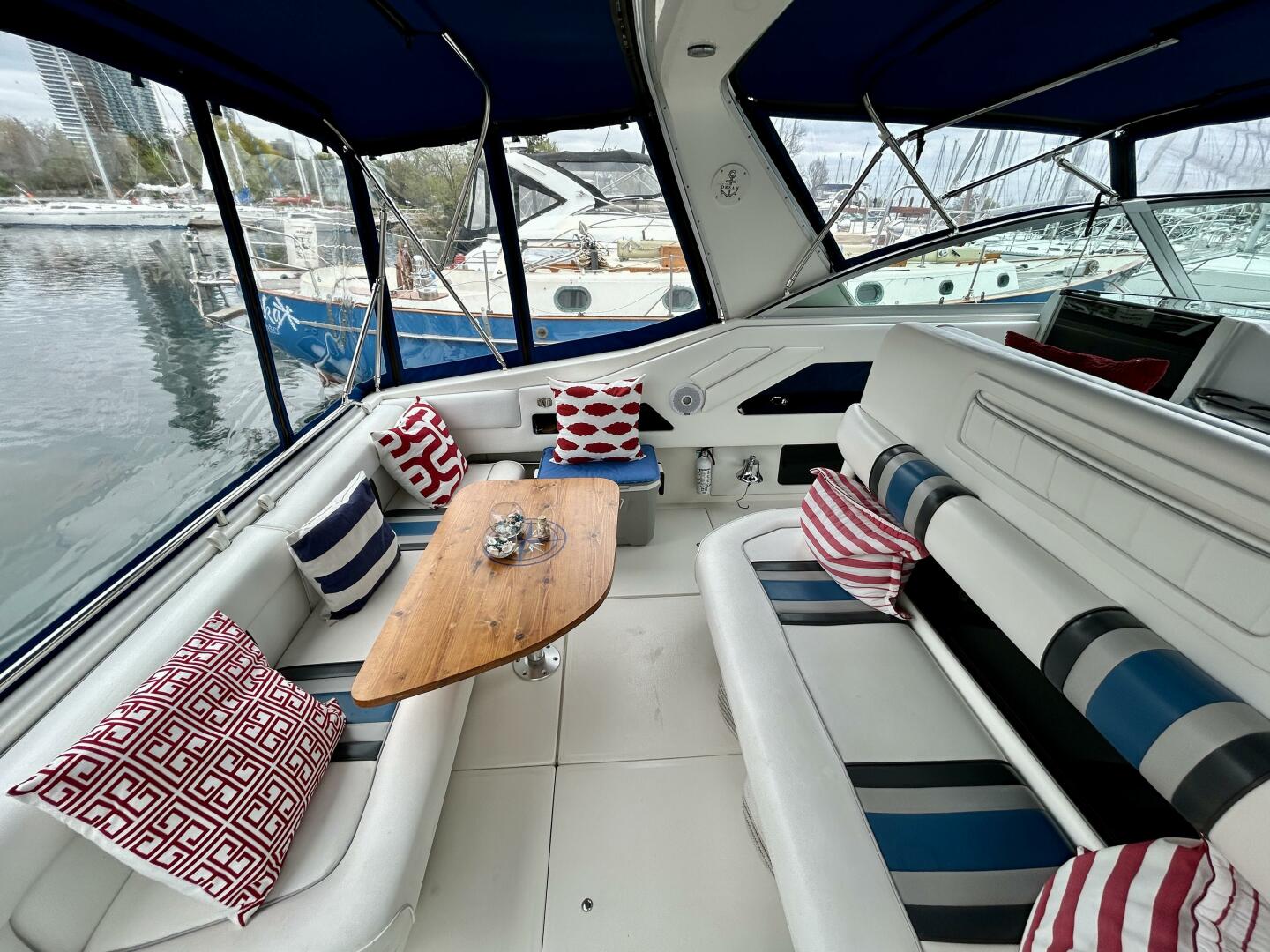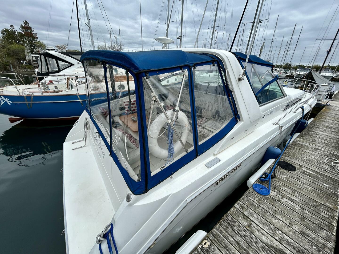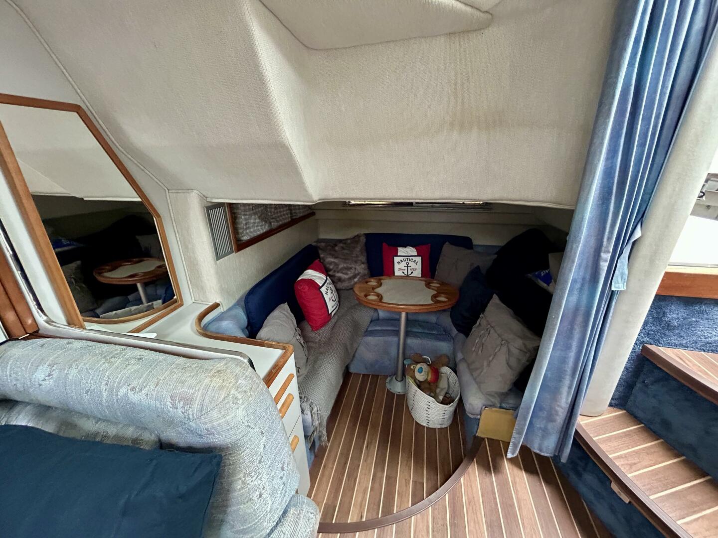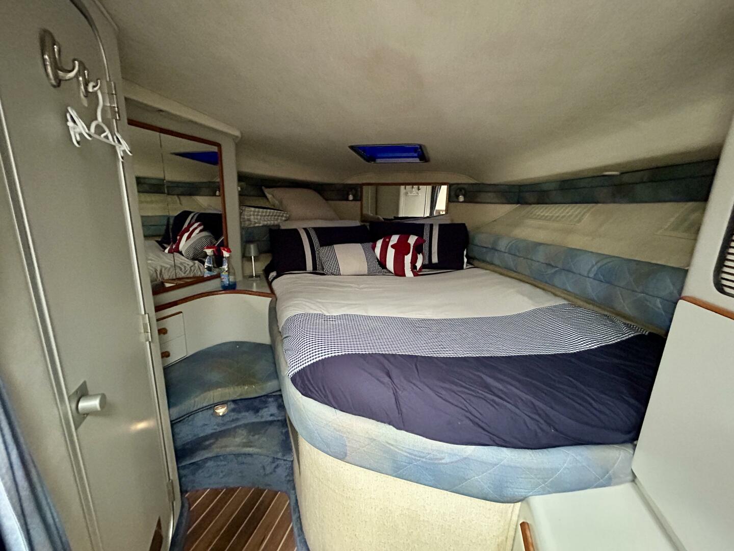 Like many Sea Rays, the 350 Sundancer has aged well. First introduced in 1990s (later called a 370) the sleek lines were considered a Stylish boat then, and is still a handsome design by today's standards for an express cruiser. The 12ft4in beam offers great stability and ample interior room for 6 to sleep. The salon is dominated by the large semi-circular dinette that converts to a berth, forward you will find the main berth and aft is the sunken conversation pit that also converts into a berth. There is a large galley with teak flooring, a microwave and 3-burner cooktop. Topside you will find seating for a small crowd with three full sized bench seats. There is also a wet bar with a sink and ice maker. Powered by twin Mercruiser 7.41L engines, the Sea Ray 350 is said to cruise in the low 20-knot range and reach a top speed of just under 30-knots.
