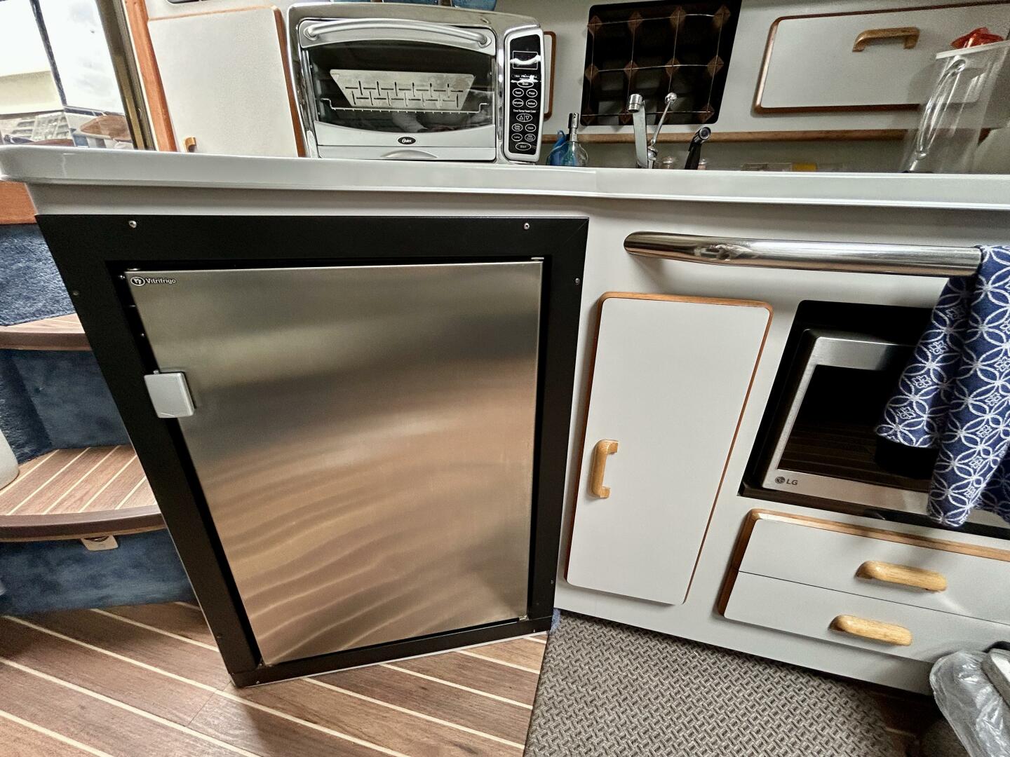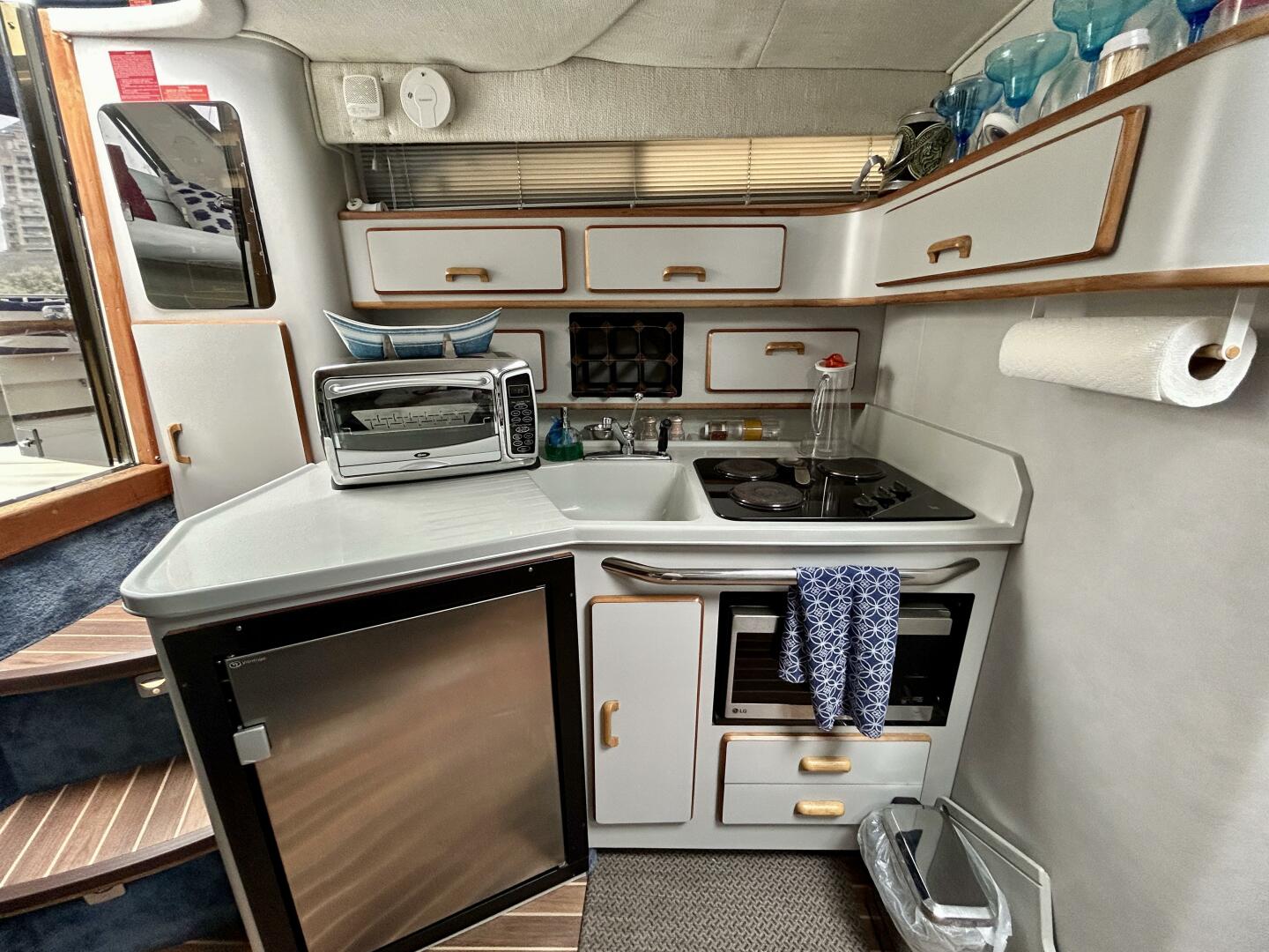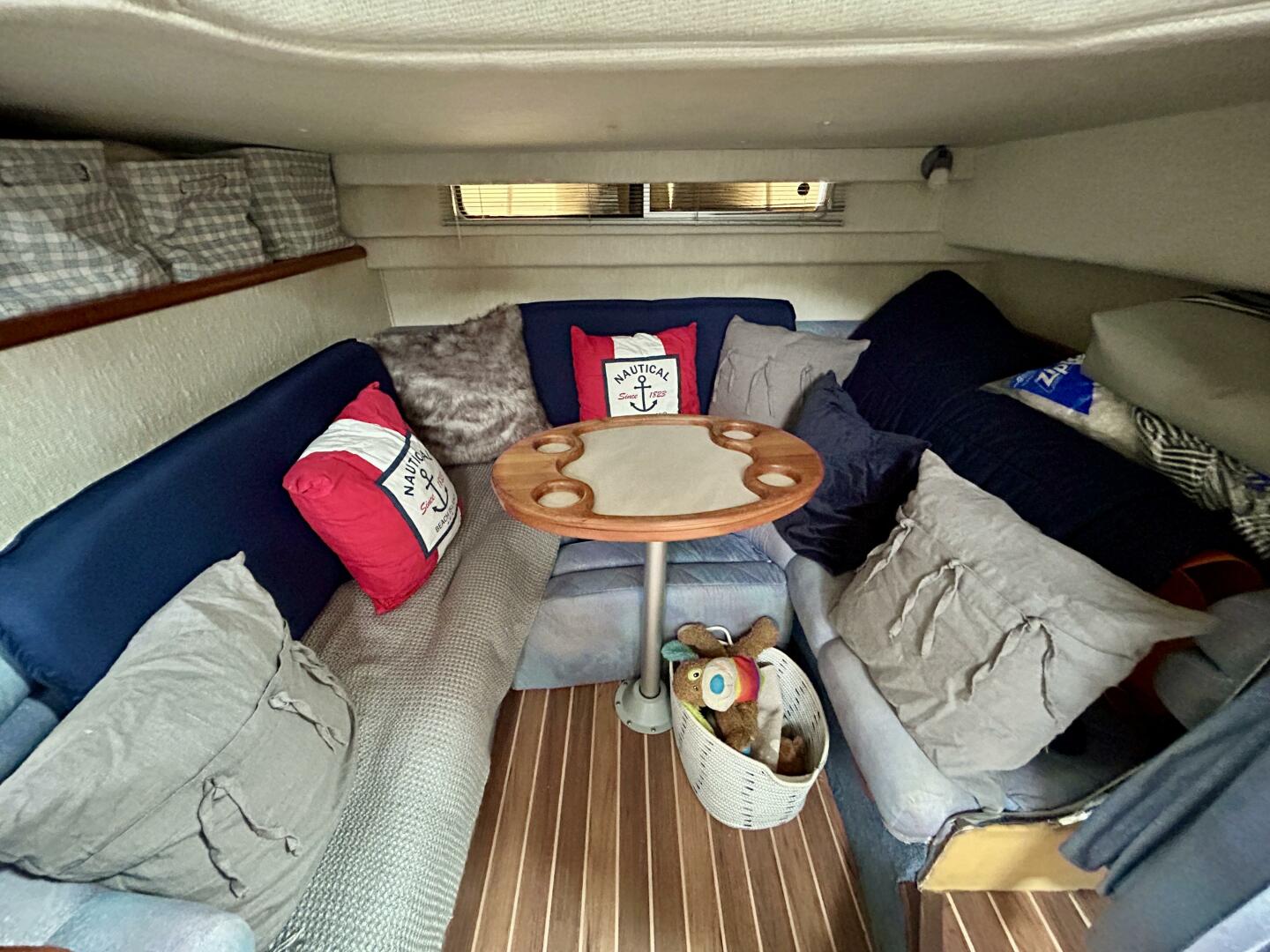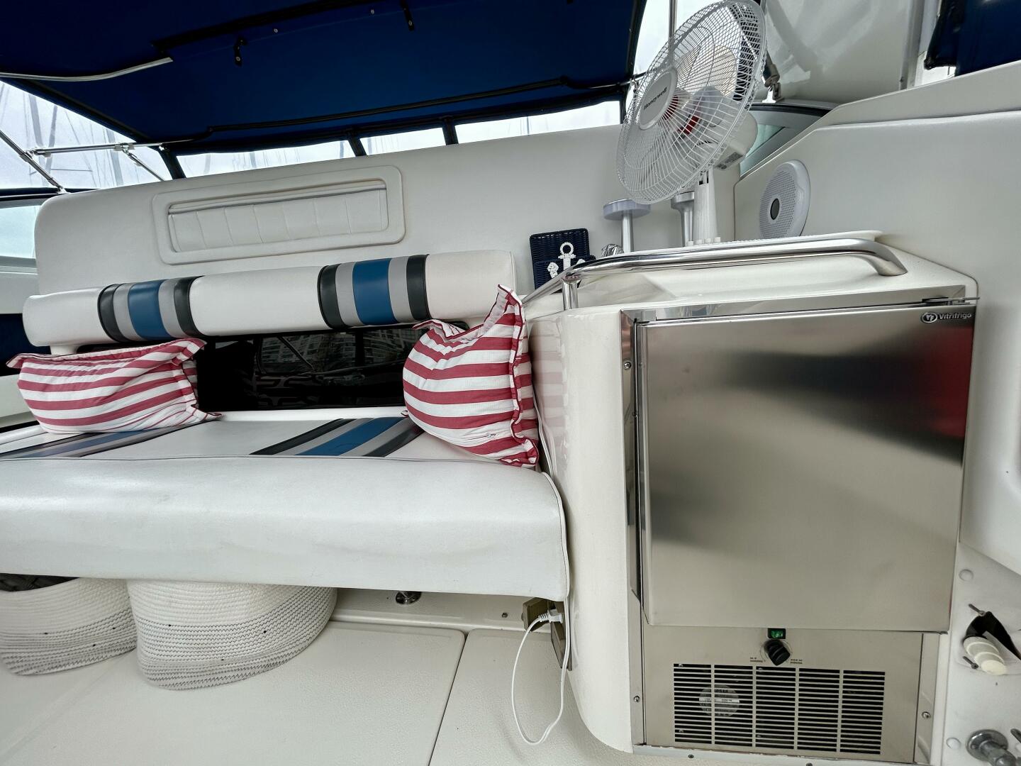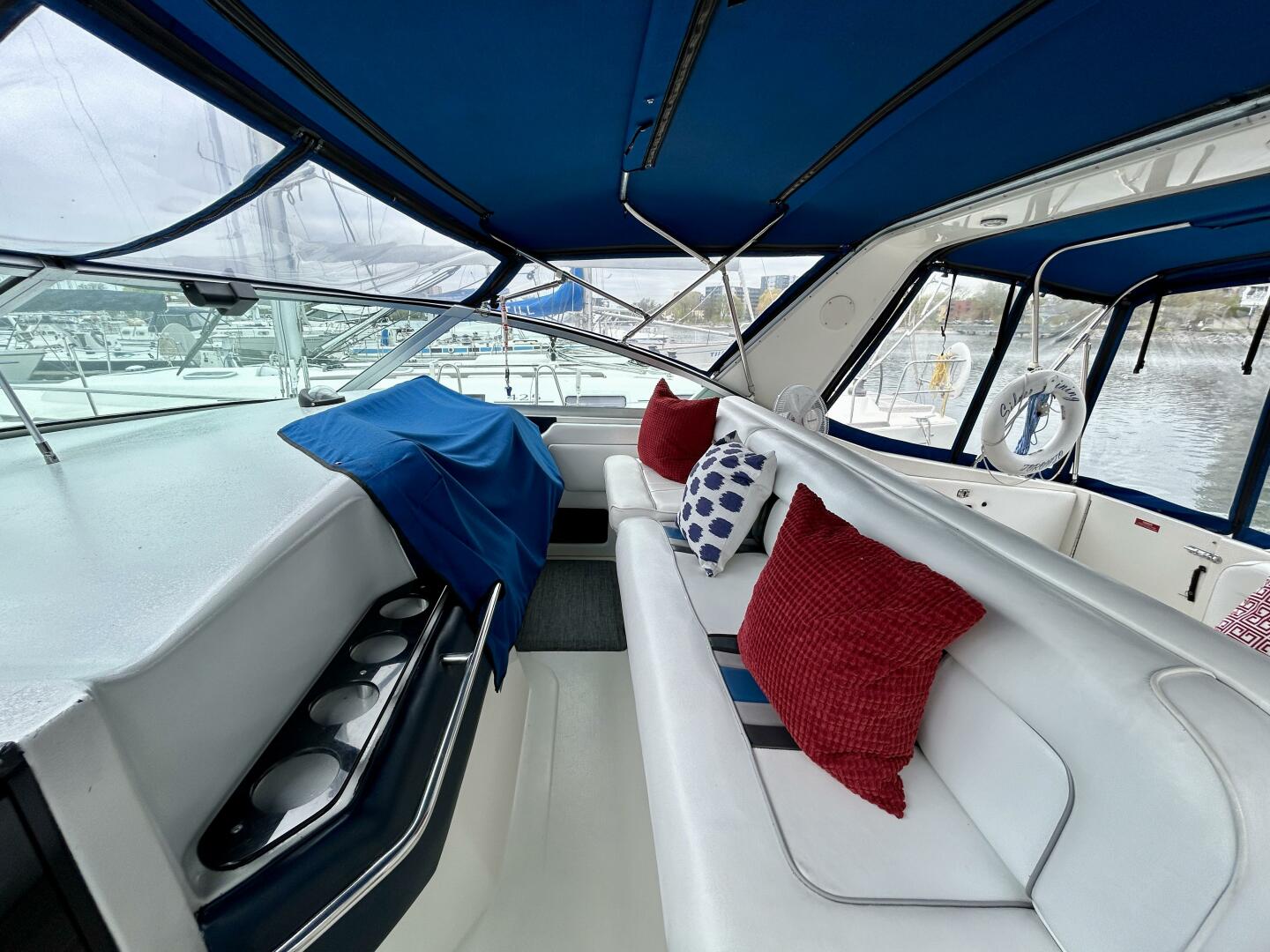 Like many Sea Rays, the 350 Sundancer has aged well. First introduced in 1990s (later called a 370) the sleek lines were considered a Stylish boat then, and is still a handsome design by today's standards for an express cruiser. The 12ft4in beam offers great stability and ample interior room for 6 to sleep. The salon is dominated by the large semi-circular dinette that converts to a berth, forward you will find the main berth and aft is the sunken conversation pit that also converts into a berth. There is a large galley with teak flooring, a microwave and 3-burner cooktop. Topside you will find seating for a small crowd with three full sized bench seats. There is also a wet bar with a sink and ice maker. Powered by twin Mercruiser 7.41L engines, the Sea Ray 350 is said to cruise in the low 20-knot range and reach a top speed of just under 30-knots.