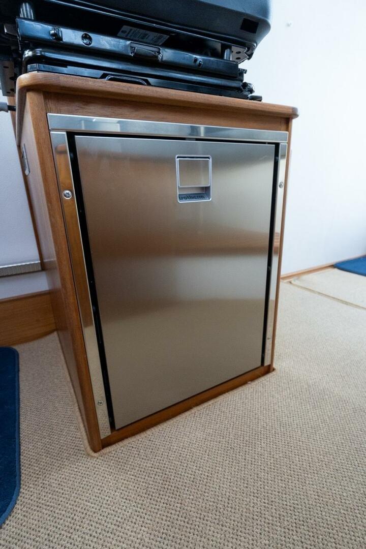 • Angled teak box for chart plotter in front of steering wheel