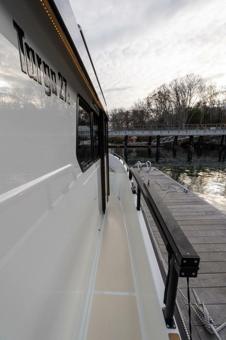 • Teakrail extended width around aft deck