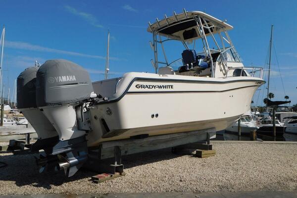 2005 Grady White 282 Sailfish, Re-Powered by 2019 Twin Yamaha 300 HP Four Strokes with only 374 hours, Includes Fiberglass Hardtop, Full Enclosure, Garmin/GPS Plotter/Fishfinder, Simpson Lawrance Windlass, Optional Companion Lounge Seat, Live-Well, Rear Seating, Washdowns, Rod Storage, 30 amp shore power, battery charger. The cabin is well-appointed, Teak and Holly Floor, V-Berth with table table, Aft Berth, Head, Vanity Sink and Shower. The galley is to port with Corian Counters, Sink, 110/12volt Fridge, Microwave, and Single Burner Cooktop, with Float On Tandem Axle Trailer with Disc Brakes and Spare. Like New !!!!