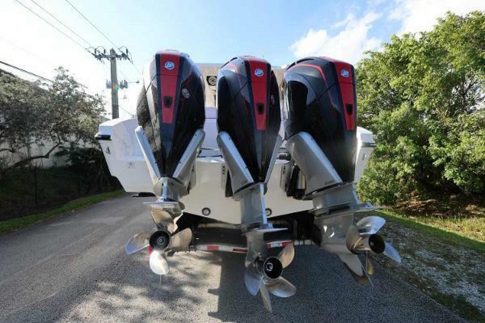 This Fountian has recently arrived from the west coast of Florida where it was stored in a enclosed Hi-Dry facility. It is a super clean boat with low hours and ready to go. Stored in our yard in Fort Lauderdale.