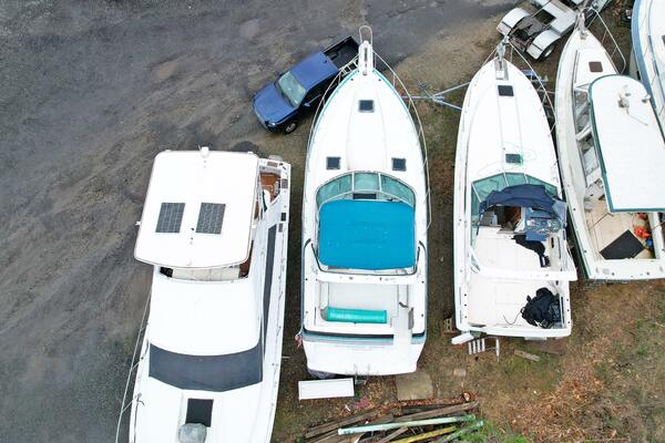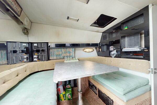 A popular model during her 6-year production run, the 36 PC is a contemporary mid-cabin cruiser whose attractive lines and comfortable accommodations make her a desirable boat on today’s used market. She was built on a solid fiberglass deep-V hull with fairly high freeboard and prop pockets to reduce her draft requirements. Below, the Formula’s mid-cabin floorplan is arranged in the normal manner with an island bed in the forward stateroom (with a door for privacy) and facing settees in the step-down aft cabin. There’s a built-in entertainment center on the aft bulkhead above the mid-cabin facing the salon—very innovative. In the cockpit, a big L-shaped lounge is opposite the helm, and a hydraulically operated hatch provides outstanding access to the engine compartment. Note that unlike most modern mid-cabin cruisers of her type and size, the Formula 36 PC has straight inboard power rather than V-drives. Standard 454-cid gas engines cruise at 17 knots and reach 26–27 knots top. Note that in 1990 (only) Formula offered an Express version of the 36 PC without the mid-cabin but with a huge engine room and extra storage.