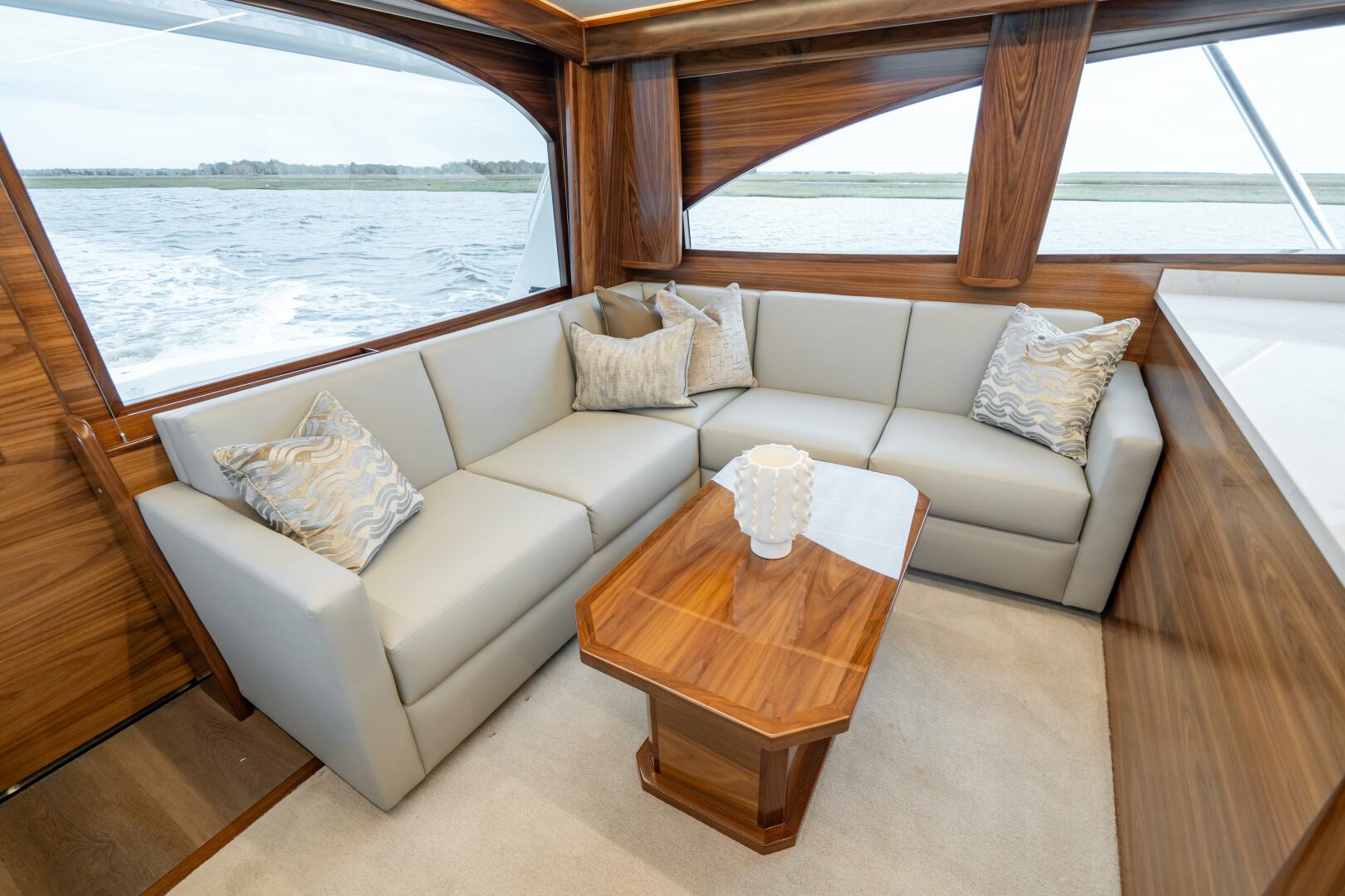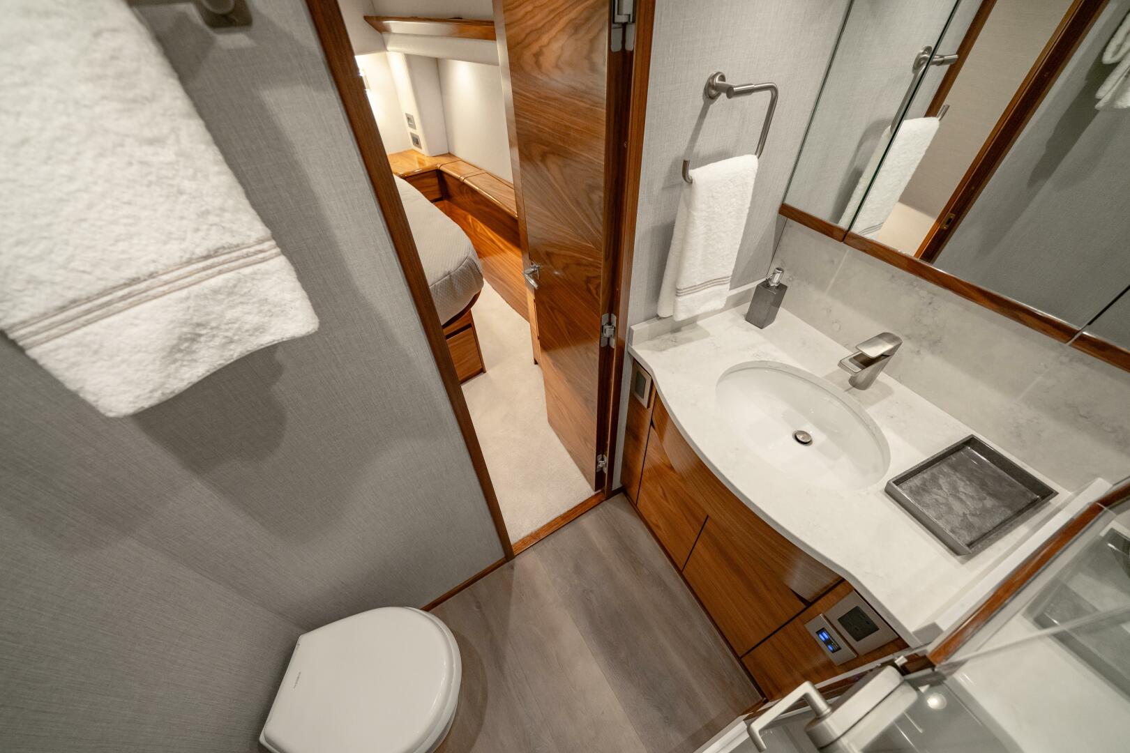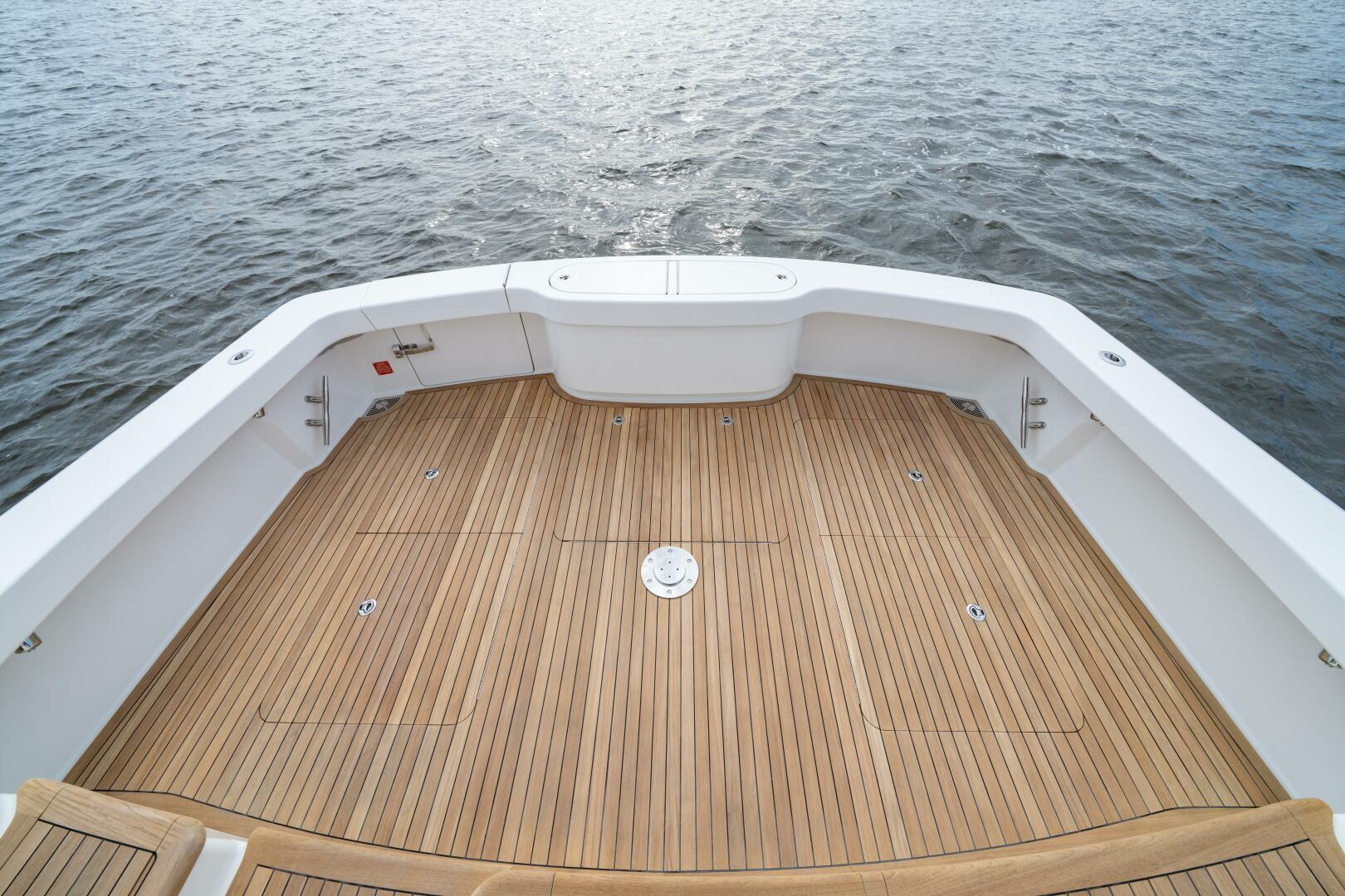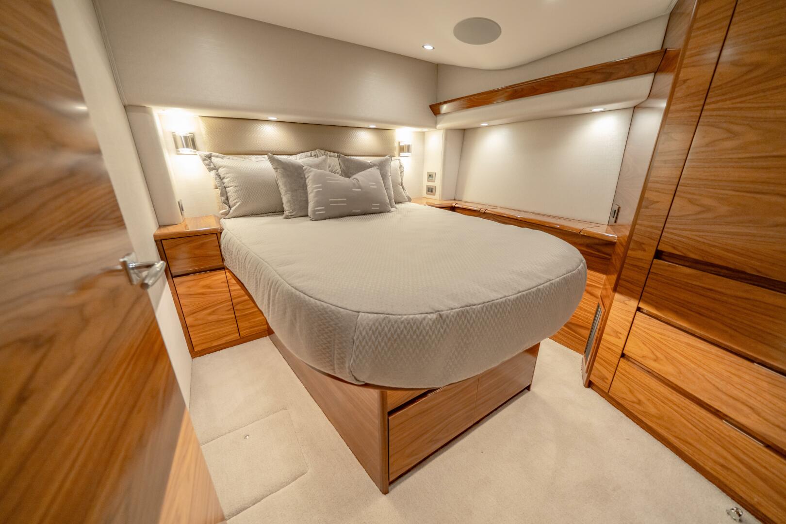 The business end centers around the 131-square-foot cockpit, which is equipped with large, insulated in-deck fish boxes that can be refrigerated. The transom holds a live well that doubles as a fish box or a place to store gear. Anglers have toe-kick space in every direction and rounded coamings for comfort. The boat is engineered for the installation of a Seakeeper 10 or 14, with the unit mounted in a dedicated space on centerline.Call a Viking Specialist today.