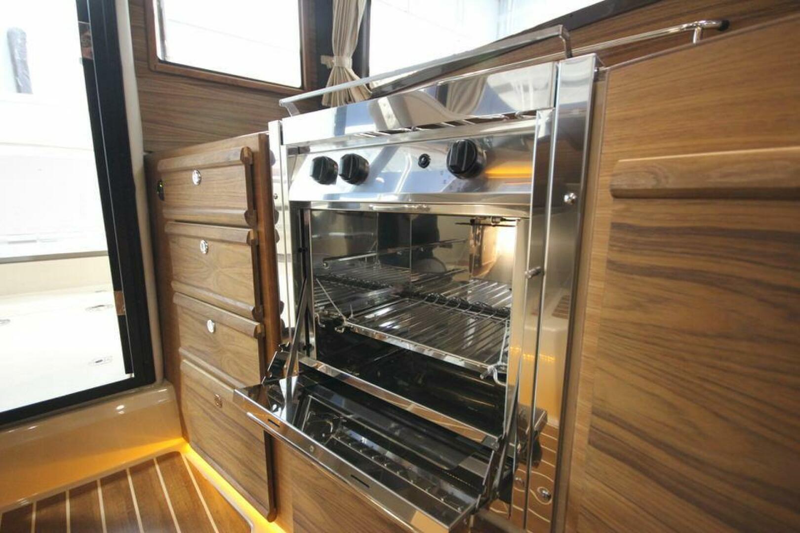 The Ranger Tugs R-29 Sedan accommodates up to six adults on three separate berths, including the forward island berth with en-suite head. The R-29 Sedan is powered by a safe, fuel efficient 320 HP Volvo Inboard Diesel engine that is located completely outside of the cabin for quiet cruising. Standard stern and bow thrusters make docking exceptionally easy.