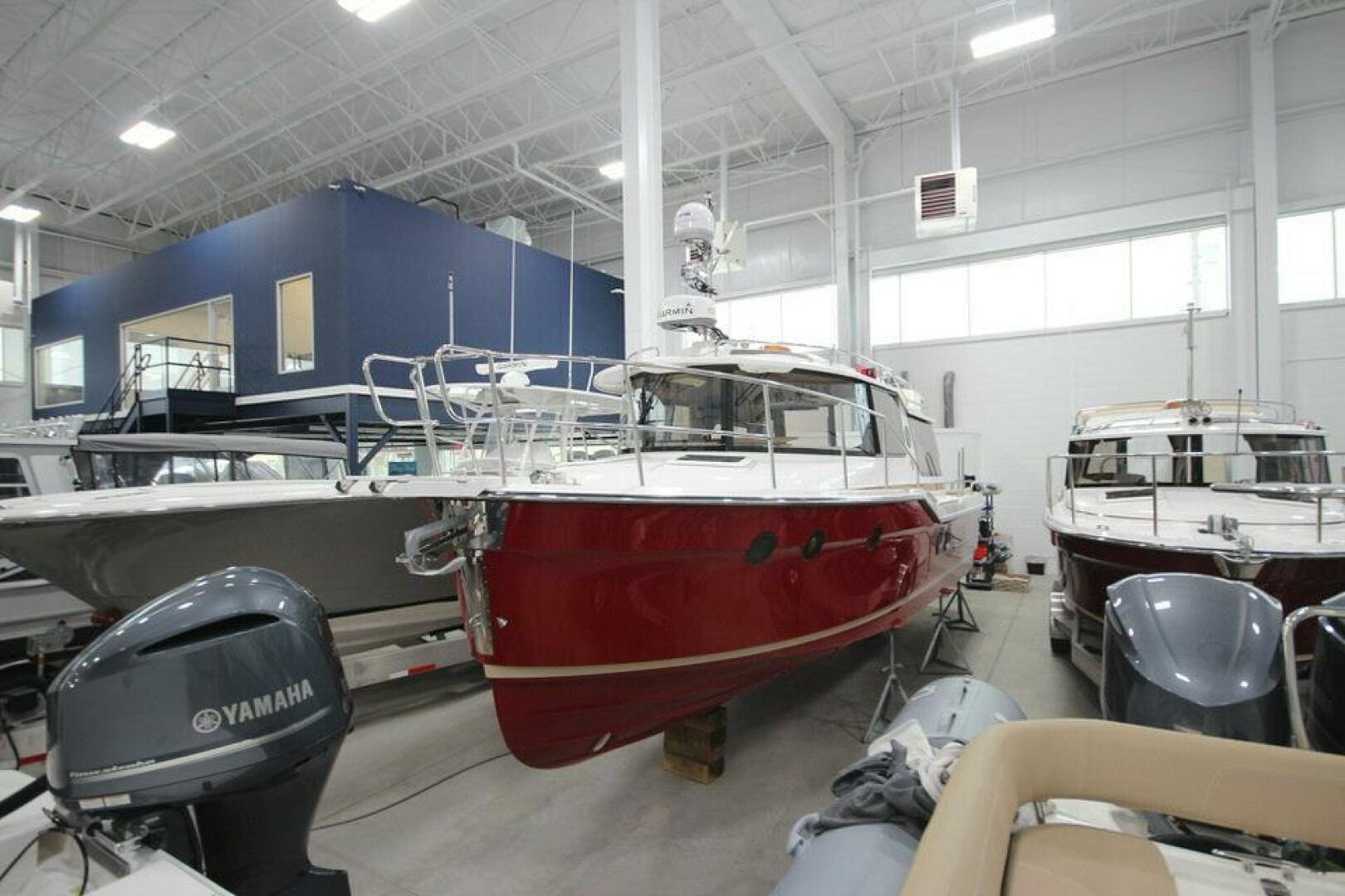 We moved into our new spacious showroom in 2018. She is located at Grand Haven Storage, 1333 Madison Street, Building A, Units 62 and 63, Grand Haven, MI 49417. She offers 15,000 square feet of new and brokerage boats on display. Our 1,700 square foot of offices and conference rooms are above the showroom on a concrete floor mezzanine with separate heat and air conditioning. She is absolutely first class. We cannot wait to show her to you!!!