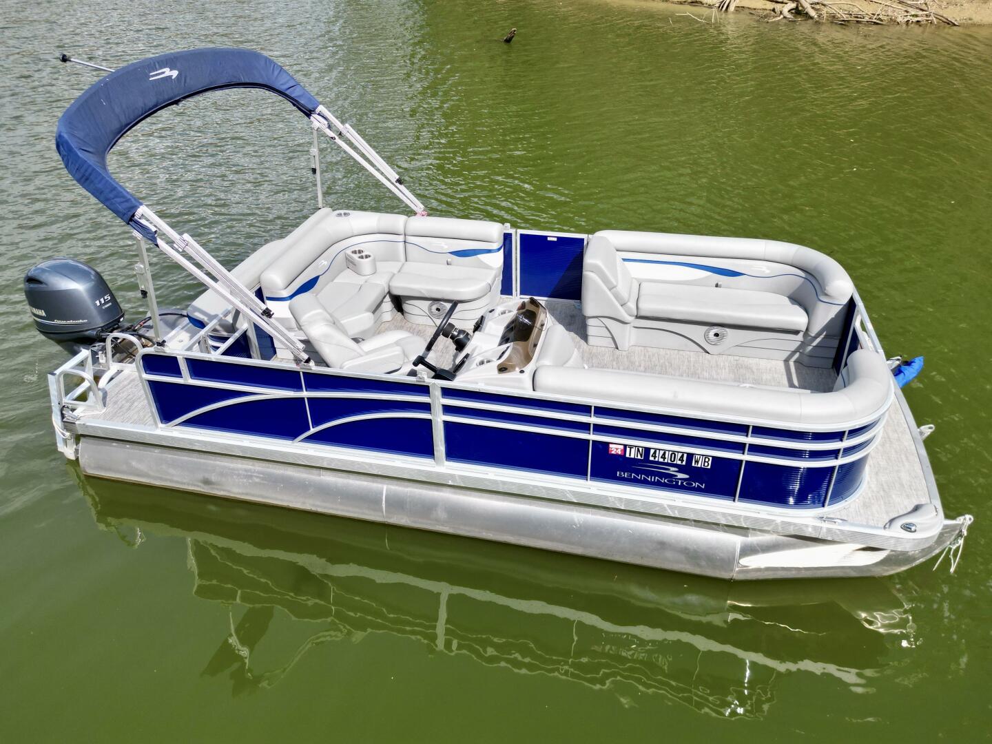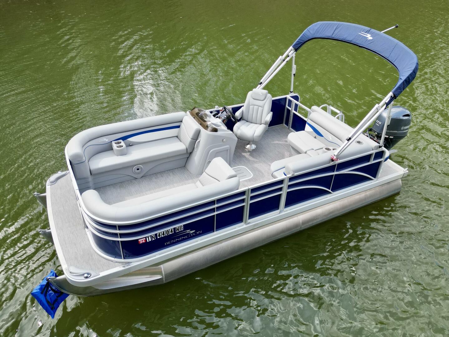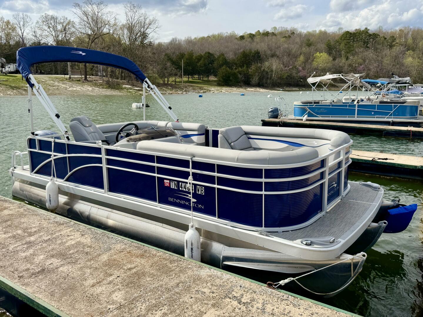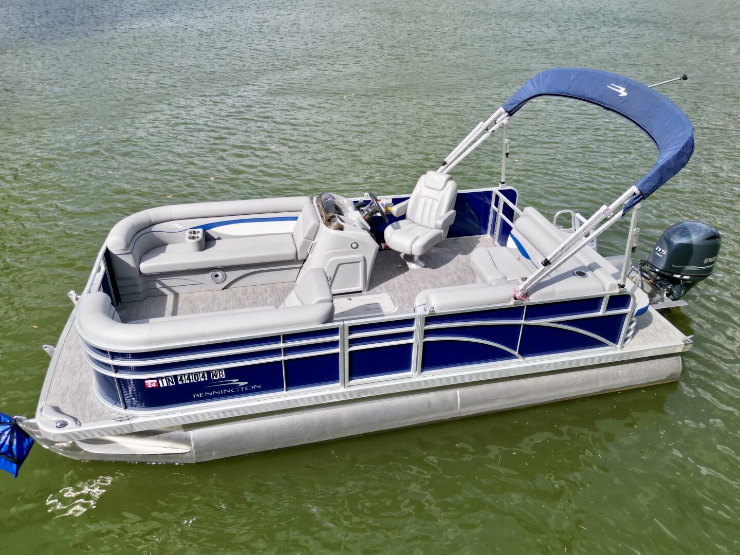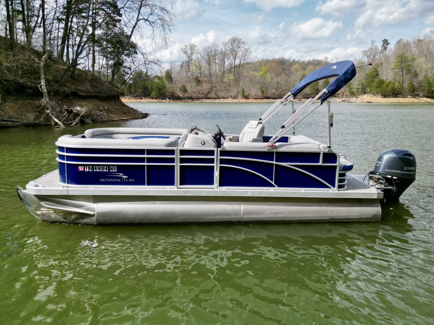 This One-Owner 2024 Bennington 208 SLJ SPS Tritoon For Sale on Norris Lake Tennessee is equipped with a 115HP Yamaha 4-stroke outboard motor (with transferable warranty) and features a bimini top, mooring cover, sea-star hydraulic steering with tilt steering wheel, luxury woven vinyl flooring, the SPS performance package with 25'' diameter pontoons, lifting strakes on the center pontoon, an aluminum under-deck wave shield, an in-floor storage compartment, a kicker stereo with 6 illuminated speakers, a garmin depth/fish finder/sonar with gps and integrated compass, a 12 volt power outlet, docking lights, a battery switch, an integrated livewell, rated for 11 persons, always fresh water use, a transferable covered slip on Norris Lake Tennessee is available, plus transferable Bennington Warranty through July 8th of 2033 and more!