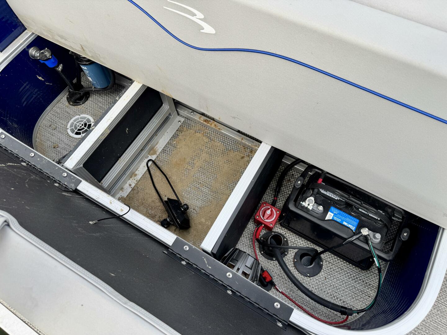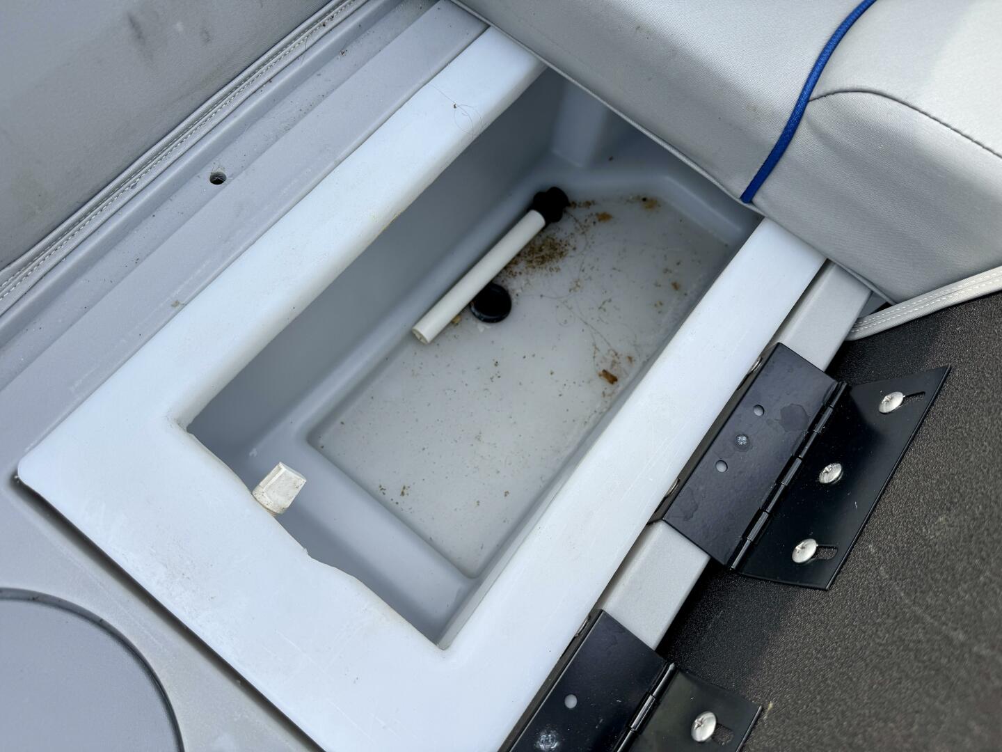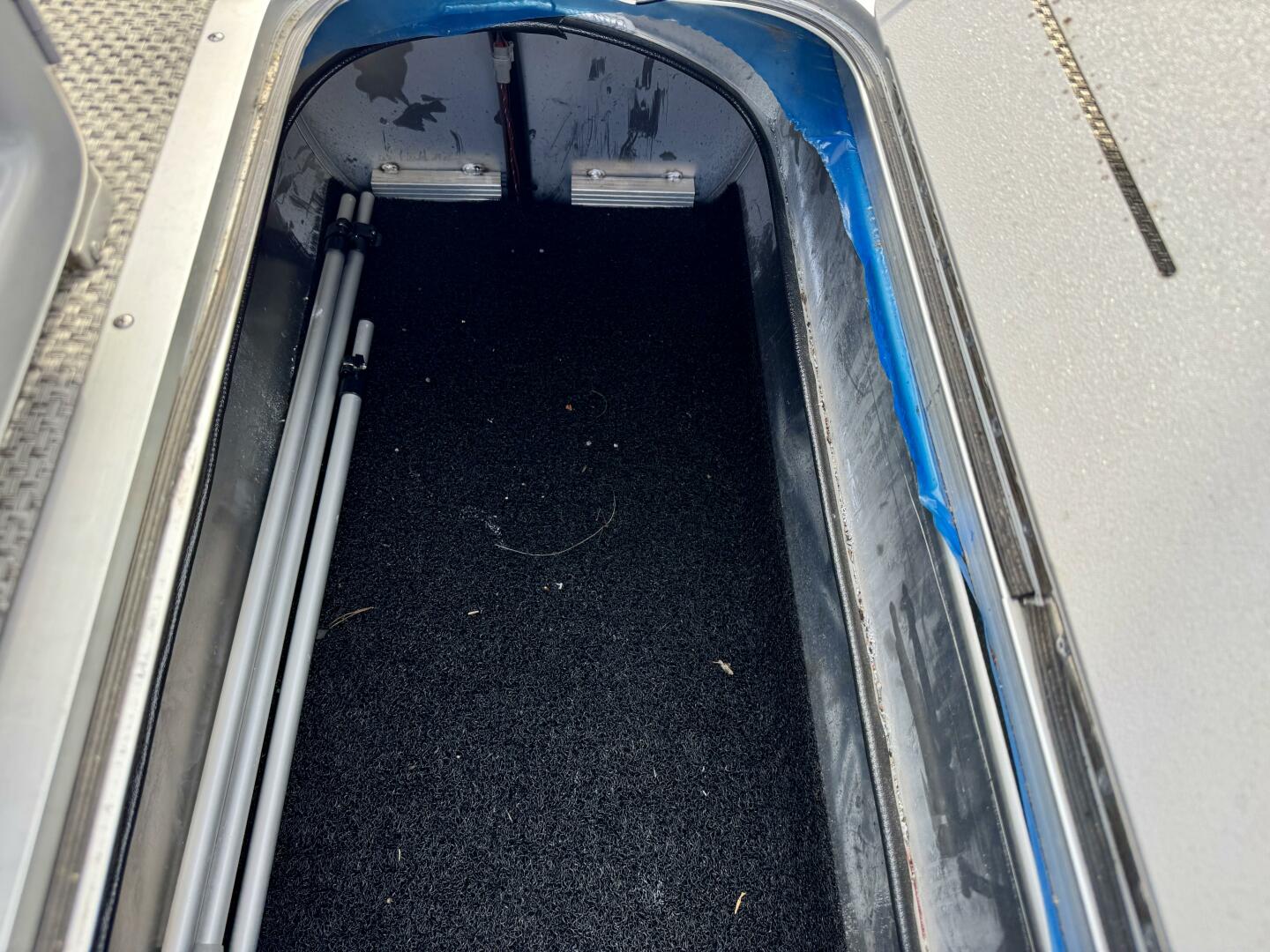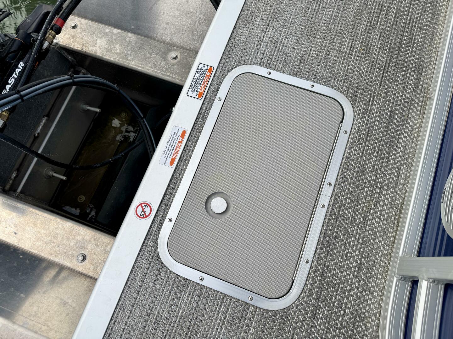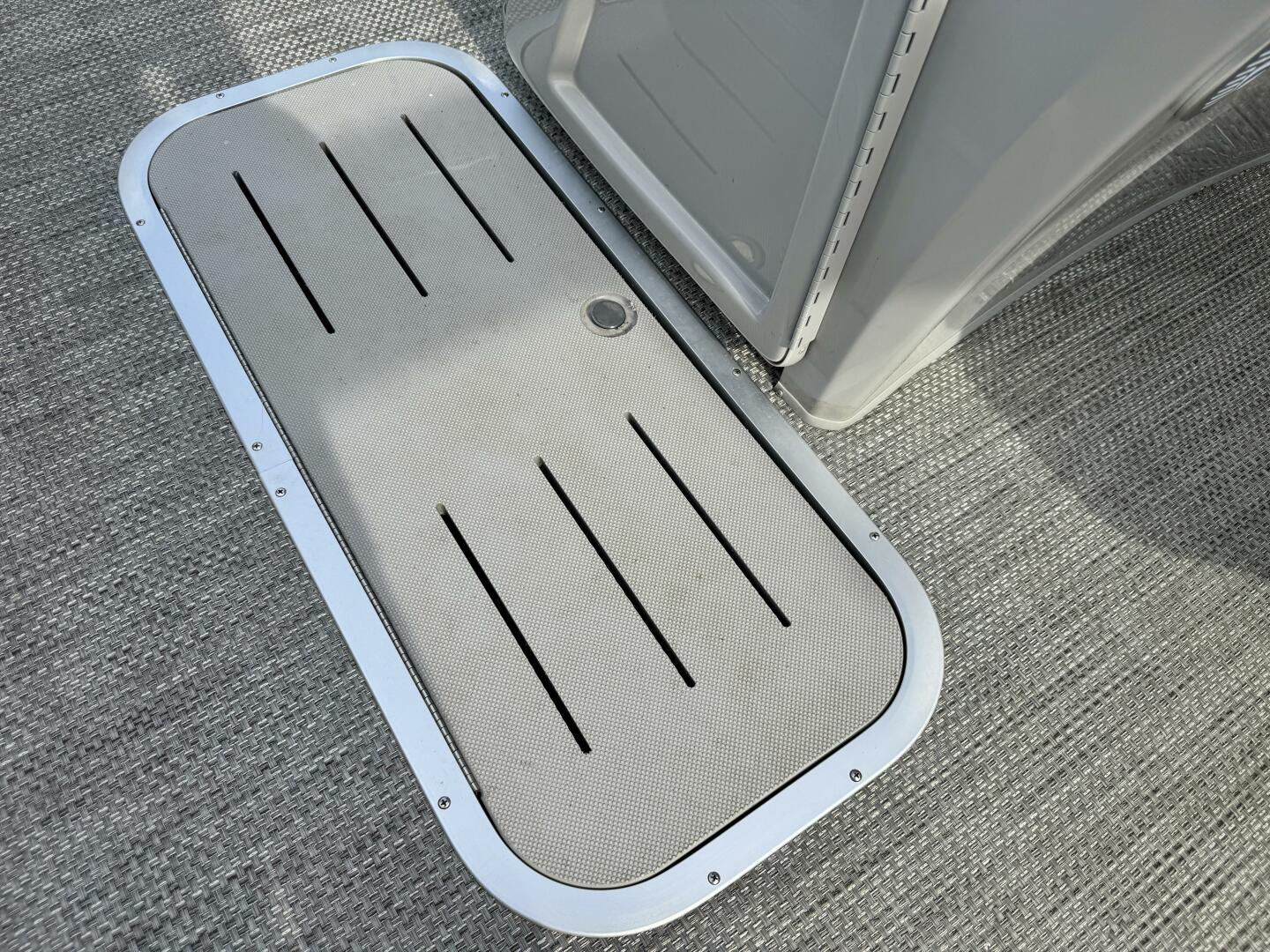 In-Floor Center Pontoon Storage Compartment, Lockable Under-Helm Storage Compartment,