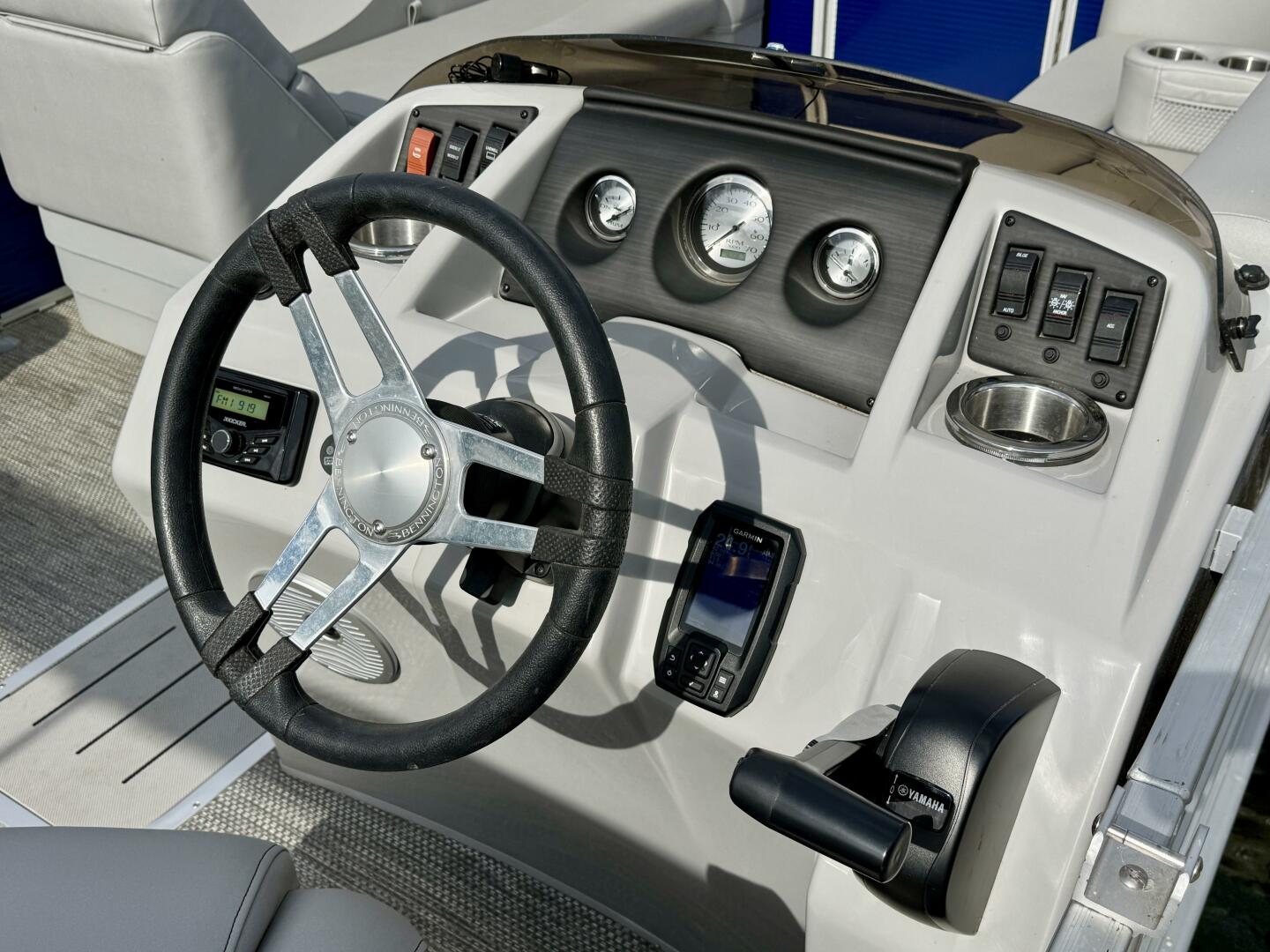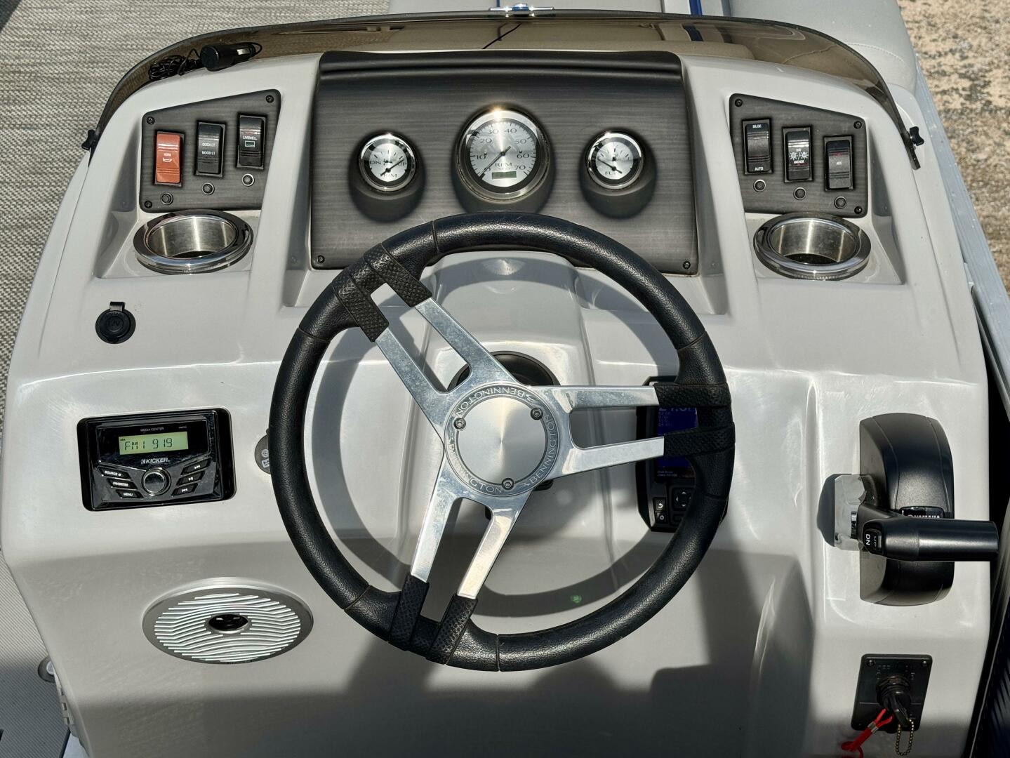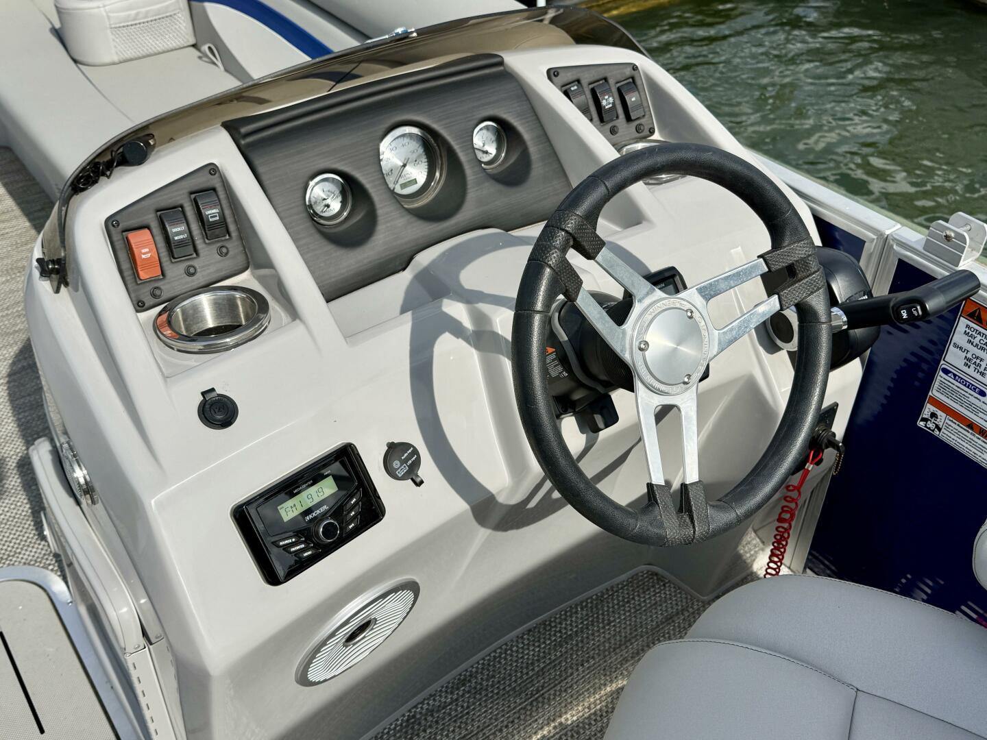 Gauges: Drive Trim, Tachometer w/Digital Hour Meter, & Fuel Gauge, 12Volt Power Outlet, Docking Lights, Courtesy Light, Battery Switch, Fuel/Water Separator Filter, 33 Gallon Fuel Tank,