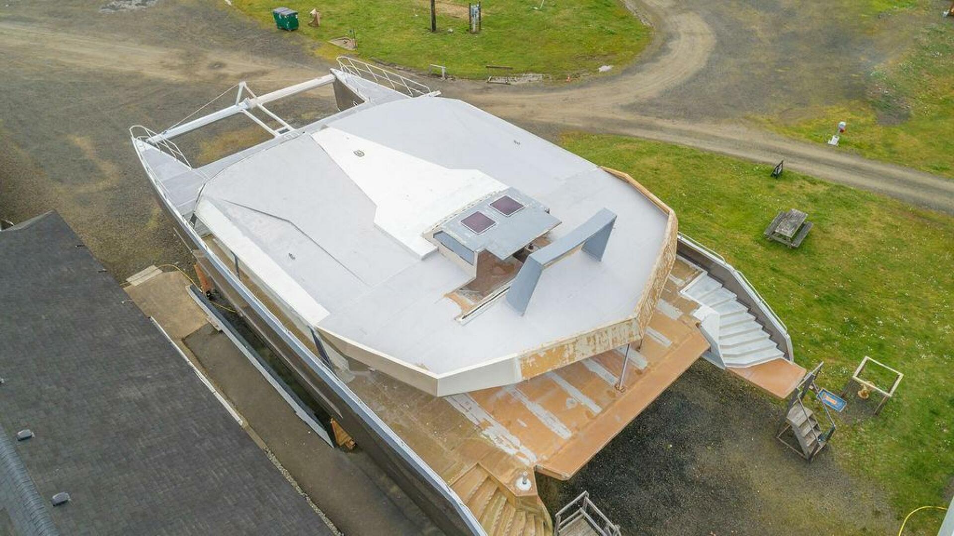 MAI CAT is built from Airex® Foam, E-Glass, Kevlar, Carbon Fiber, Vinyl ester Resin, Divinycell Foam. No rot, and excellent strength. There are Kevlar beaching pads built into the hulls. With current completion %, you would save approximately 2 YEARS of build time!!