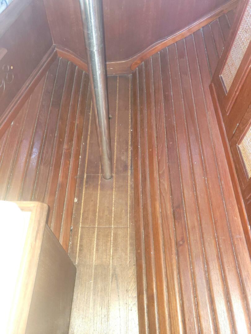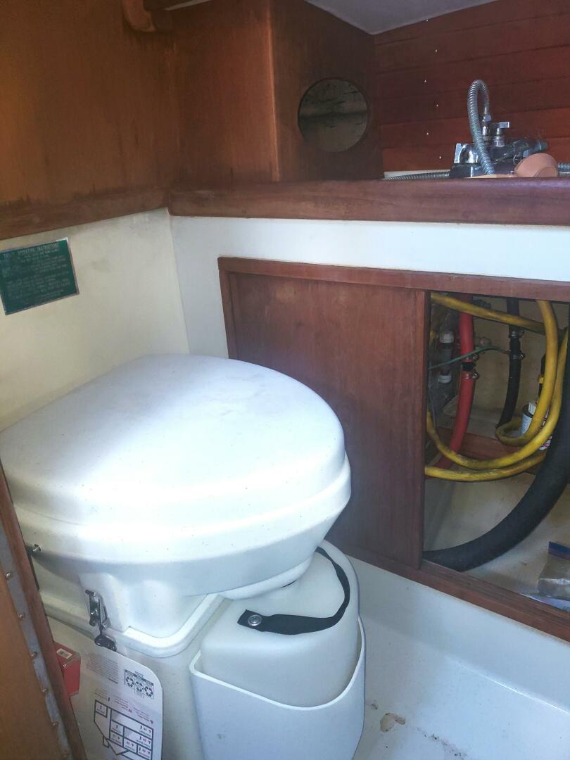The more popular center cockpit model allows for a slightly more functional interior arrangement and greater storage volume. Over the years there were slight changes in arrangements, but generally the main saloon features a dinette forward that converts to a comfortable double berth when the table is lowered. There are a fully enclosed head and chart table to the port side and the galley to starboard with gimbaled stove and oven, stainless steel sink, and ice box. The aft cabin is accessed from the cockpit and is for storage and sleeping only. It features two comfortable sea berths and lots of volume for storage. The aft cockpit version has a similar arrangement forward, although the trunk cabin is slightly longer, and there are port and starboard quarter berths.