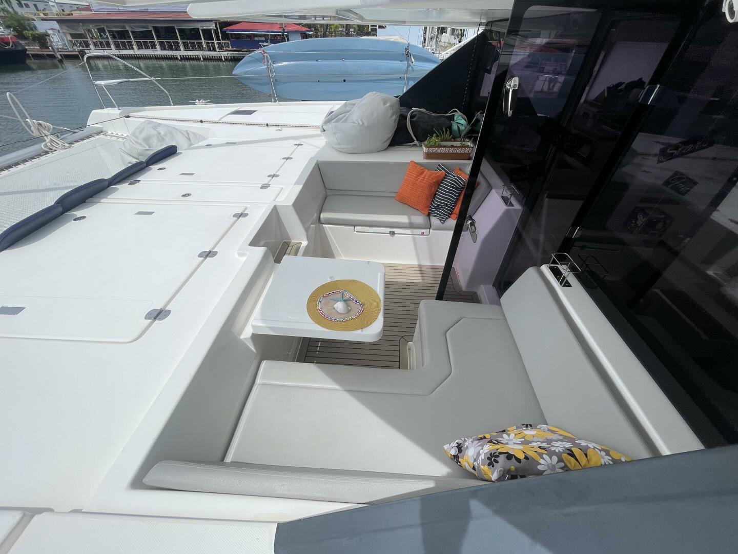 - Forward lounging cockpit with hardtop with watertight saloon access door and sliding hatch for easy foredeck access